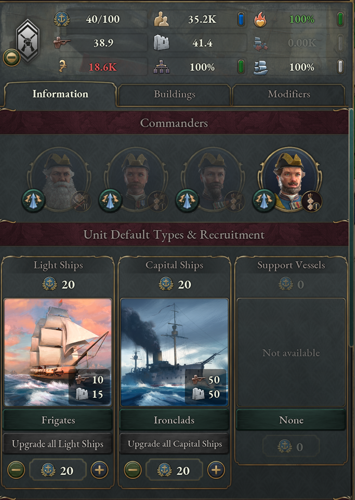 Почему в Виктории из всего флота на 40 кораблей с моей стороны в сражении участвует 2? Я не могу понять, как фрегаты побеждают дредноуты, пока не посмотрел на бой. В их флоте 55 деревянных кораблей и 4 адмирала, у меня 40 железных и 1 адмирал. У них в бою 33 корабля, у меня 2. Вопрос - какого хуя?