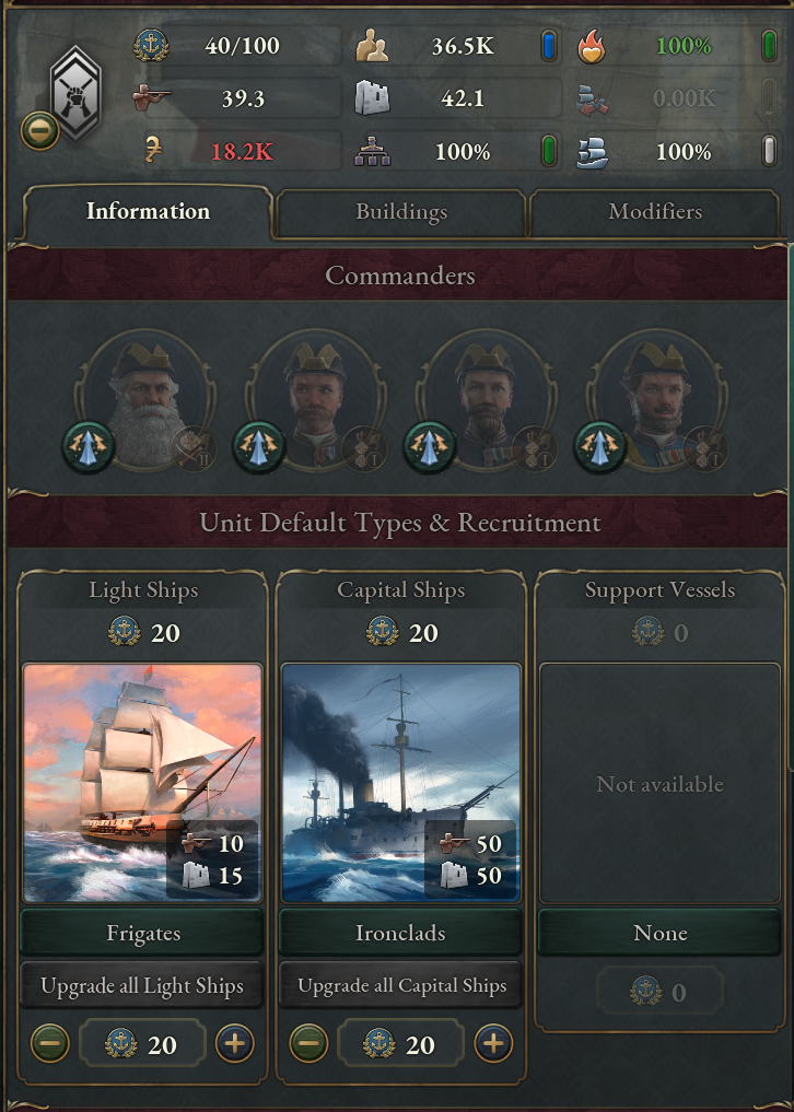 ОДНАКО, если ранги адмиралов у врага выше, чем у тебя, игра почему-то будет думать, что у врага больше корабликов, чем есть на самом деле: каждый файт флот 2 будет выставлять 20 корабликов, а флот 1 <20 корабликов