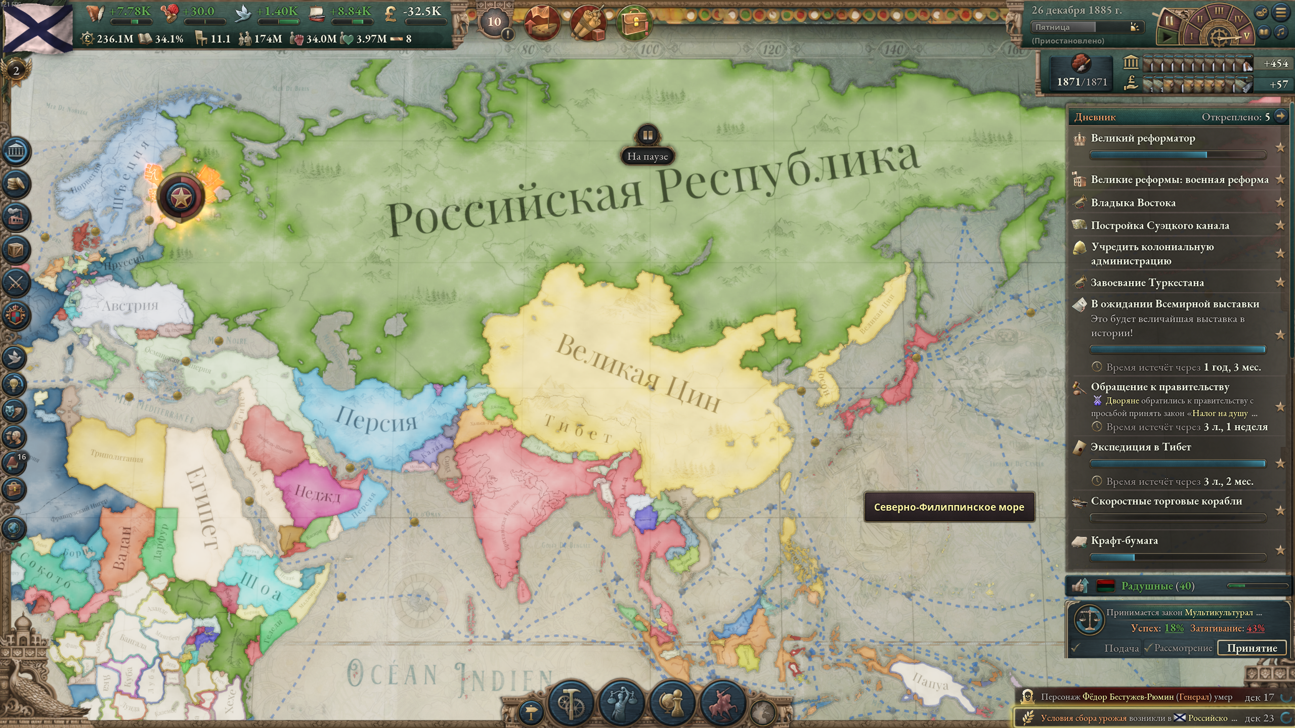 >>50156592 Тоже пытался тобиться такого, но не вышло. Кстати, обратил внимание, что колониальные автономии пиздец как лениво колонизируют. Мне оказалось эффективнее всё сделать самому и создать автономии в самом конце, а не создавать их при первой возможности. Но опять же я не докрасил Африку потому-что я захватывал еще юго-восточную Азию, чуток в Индии и Северную Америку. Ты, я смотрю, на ЮВ Азию вообще хуй забил, я обычно туда всегда лезу.