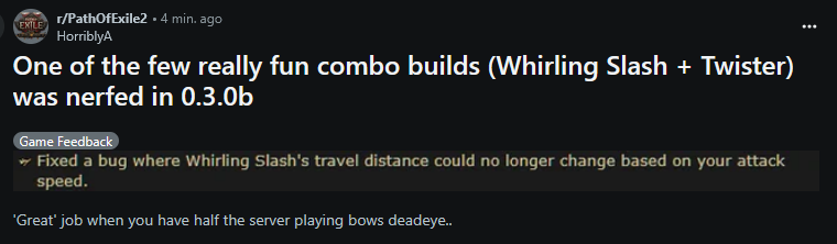 да это вам не пое1 с безобразием и дисбалансом взрывающиеся тотемы лигу держались даже какой то петухкорщик на рухлесе уберов закрыл им вот другое дело в пое2 закон и порядок шаг вправо шаг влево в попытке сделать уникальный билд приводит к расстрелу на месте следующим же патчем