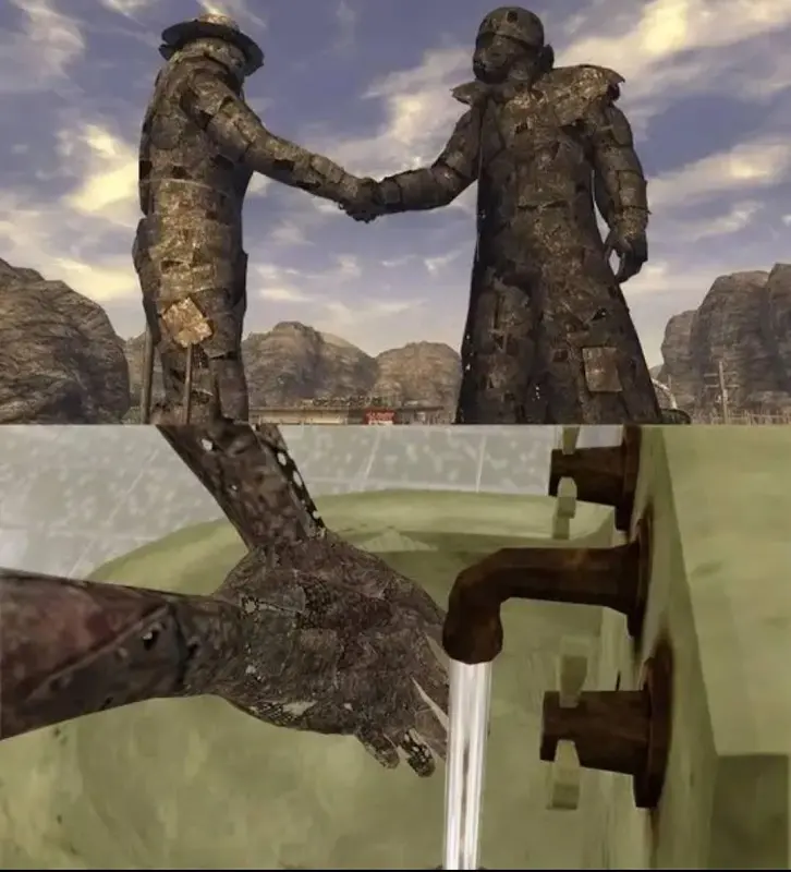 Почему мистер Тодд, почему вы высираете говно без сюжета? Вот есть вегас. Написали охуенный сценарий, сделали всё за 12 месяцев. Тодд делает игры по 3 года и каждый раз говно. Его подменили после Скайрима?
