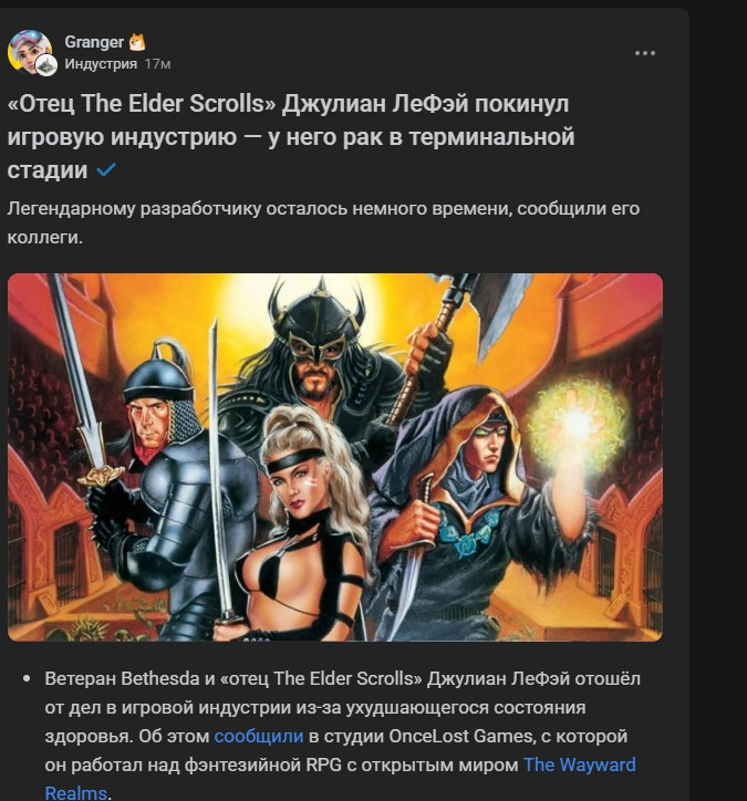 Вчера впервые попробовал 76 - блин, а прикольно сделали. Прям квинтэссенция беседко игр, максимально заточенная на исследование - повсюду локации, домики, записочки и кассеты (даже перебор немного с ними). Походу все разрабы над фол76 работали, а на старфилд просто забили, кое как рандомно сгенерировали локации и положили хер. Вот только с тем что вертикалку в настройках не отключить - это огромный косяк, ебало новичка представили когда он заходит в игру и видит лок в 55 фпс на 165гц мониторе? Я то уже играл в фол4 и знал что надо делать, но это же жесть - обычный чел не будет это гуглить, потом лезть в ини файл в документах... Но игра класс, вчера залип до самой ночи.