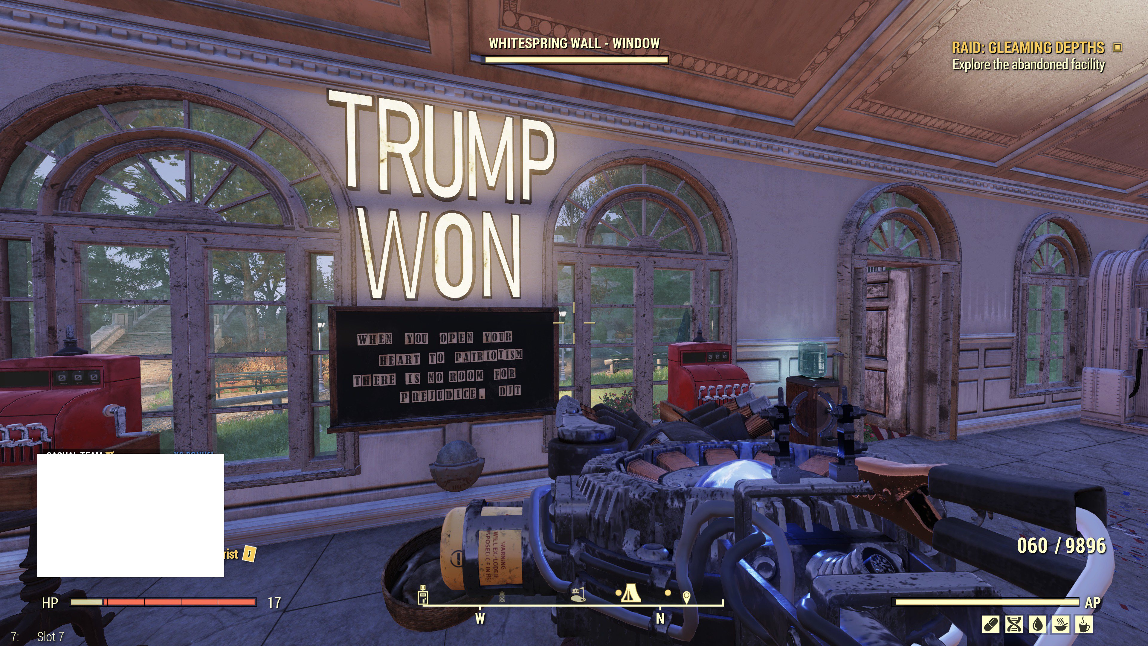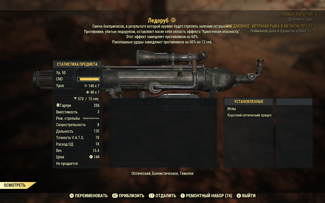 >>50174964 >фанат больших членов 3 Можешь сбегать в комбат зону, взять с собой Кейт и открыть кейс с криолятором в убежище 111. Все его игнорят, потому что экзотика, а это на самом деле турбо дилдак, который пидорит всё живое. Если его апнуть до кристаллического ствола (навыки не нужны), он превращается в какую-то нереально охуевшую снайперку в ВАТСе. В реалтайме придётся стрелять по дуге. Подводные: - нужно качать фаната больших членов и взрывника чтобы был охуевший урон. Также качать разброс от бедра, чтобы в реалтайме не сосать. - баг: убитые заморозкой враги потом респавнятся бессмертными и неподвижными мумиями, нужно ставить фикс. - стены в ватсе не пробивает, кристаллы застревают в стене. - патроны стоят как золотые унитазы, надо харизму до 16 или 10+виноградные ментаты, если хочешь закупаться ими.