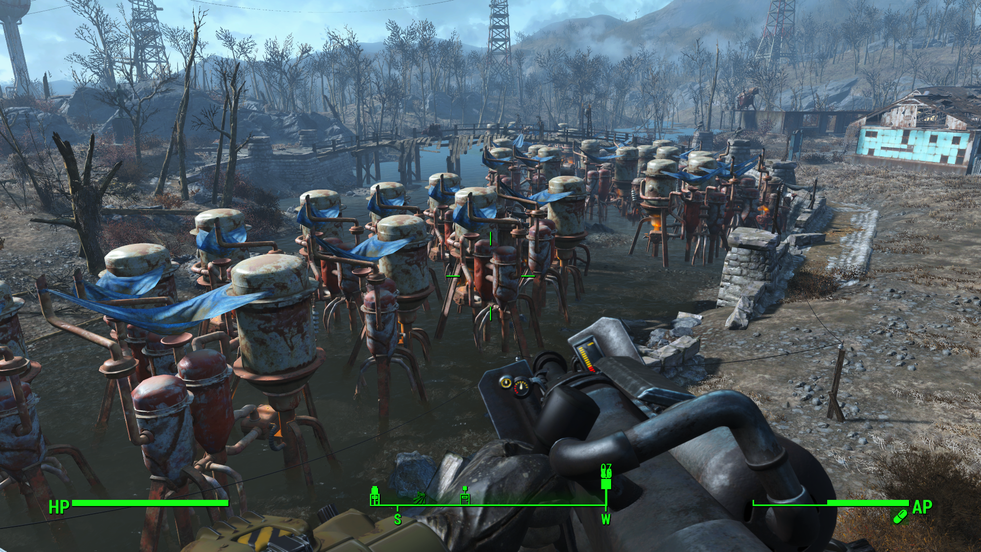 Будешь играть - убивай врагов с миниганами (они там же где в ваниле) и переделывай патрики в .38. Мили оружие с наибольшим уроном который всё ещё достаточно быстр чтобы опередить любую атаку врага это мачете. Ближайшее мочето лежит вниз по холму от дома Абернати, в камнях на чумодане. Делай квест Грейгардена как можно быстрее, через пару дней роботы пришлют тебе на почтовый ящик водный чип. Иначе тебе придётся развиваться до 7 уровня поселения, чтобы просто получить чистую воду, а это пиздец межгалактический магнатище.