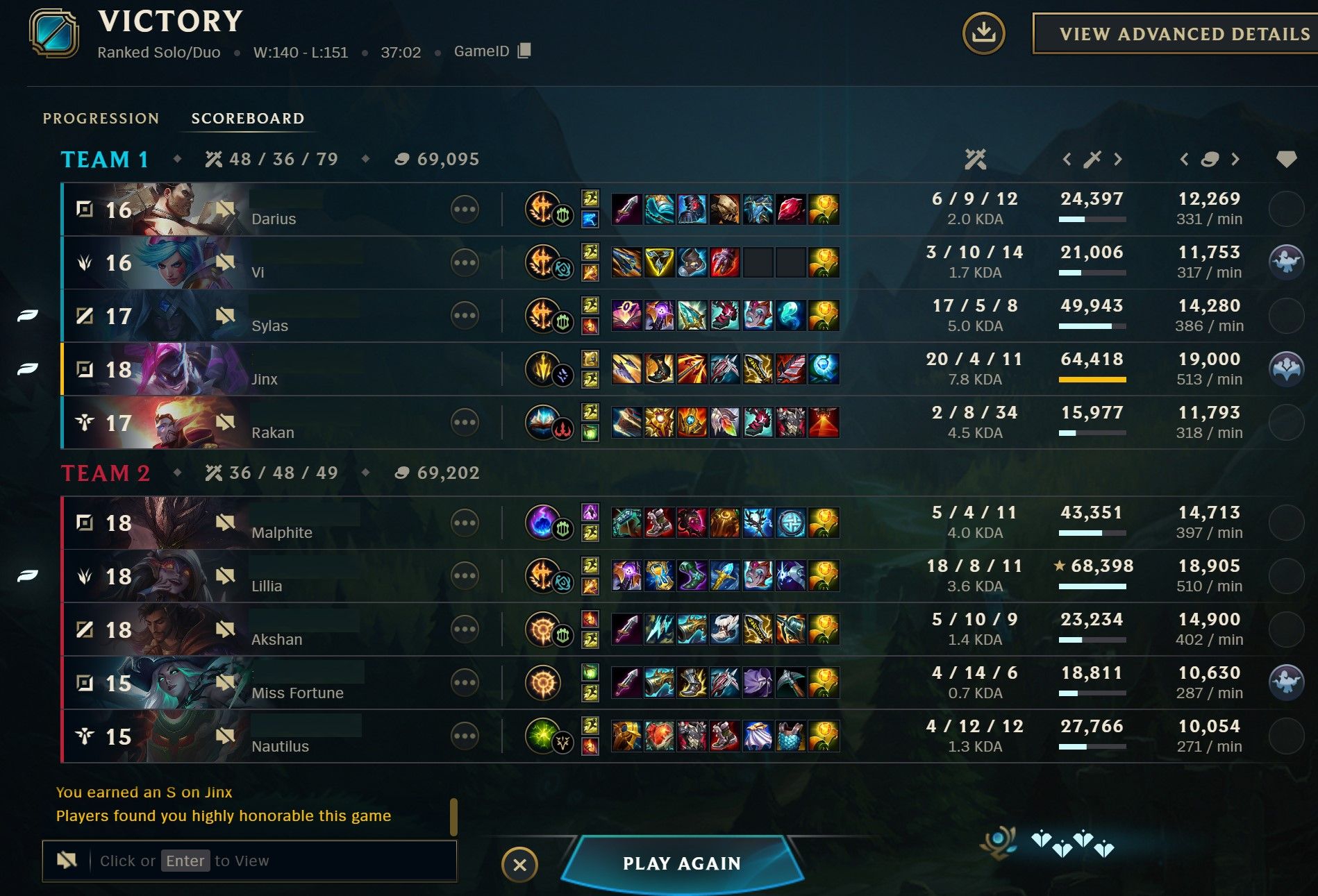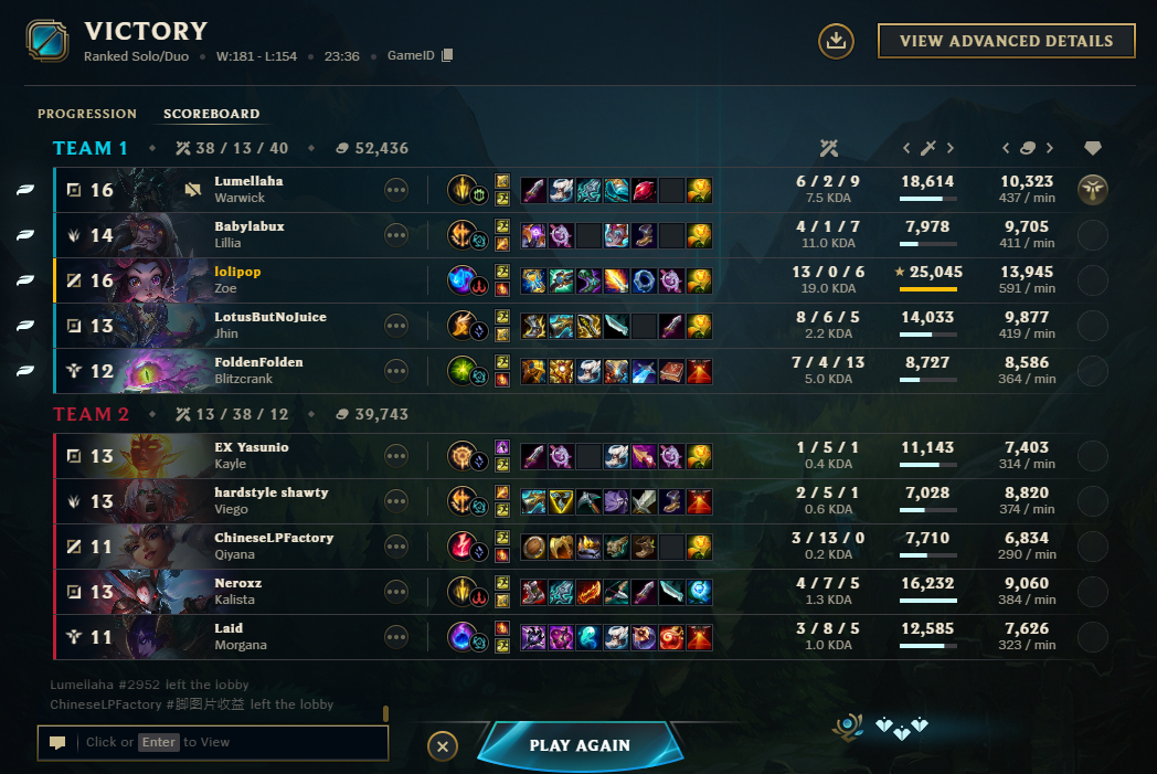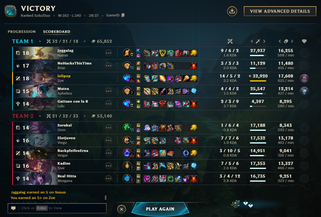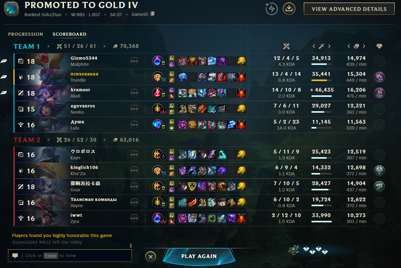 Вот и весь ранкед в этой мобе, система просто катает игроков на дофаминовых качелях, то давая победить, то наваливая лузов, а игроки и рады, думая, что они что-то решают и борются в огромном чане говна за очередную рамочку и скин, играя по 1000 ранкедов за сезон