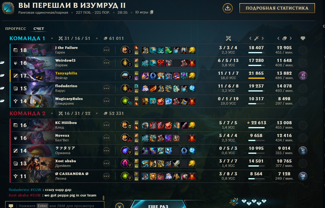 >кидаю комменды после игры. вы это делаете? Каждую игру кидаю реки, иногда рандомно, иногда тем кто молчал в чат, часто противникам, особенно тем которые выебали на лайне, не воспринимаю это как унижение или оскорбление. Отношусь к рекам как к бесполезной хрени, но получать по 5 штук от всех конечно приятно.
