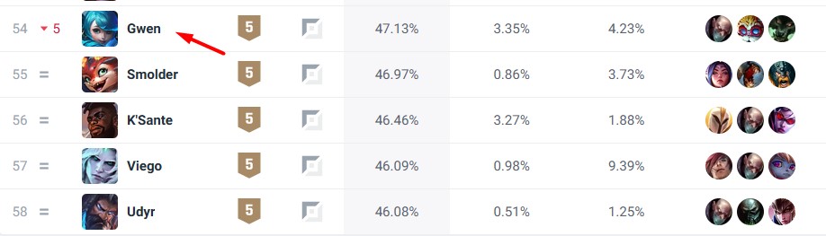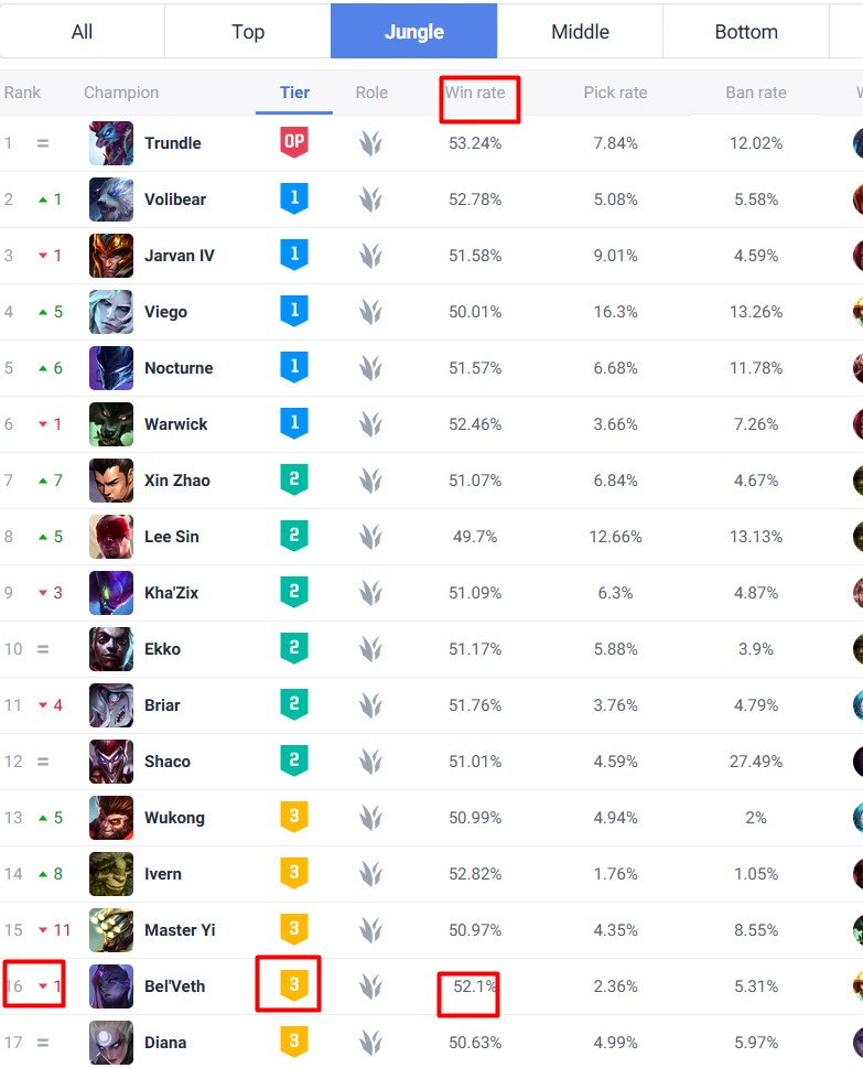 >>50086537 Как скажешь, чел. Только почему-то этот чемп находится выше в тирлисте, имеет выше винрейт как на эмеральд+, так и на All tiers. btw, не встречал ни одного вменяемого белветплеера в моей команде в этом сезоне. ну, может, 1 был, и то хз когда. такого, чтоб обьекты брал и фидил так, словно вся его родня на кону