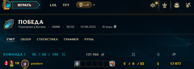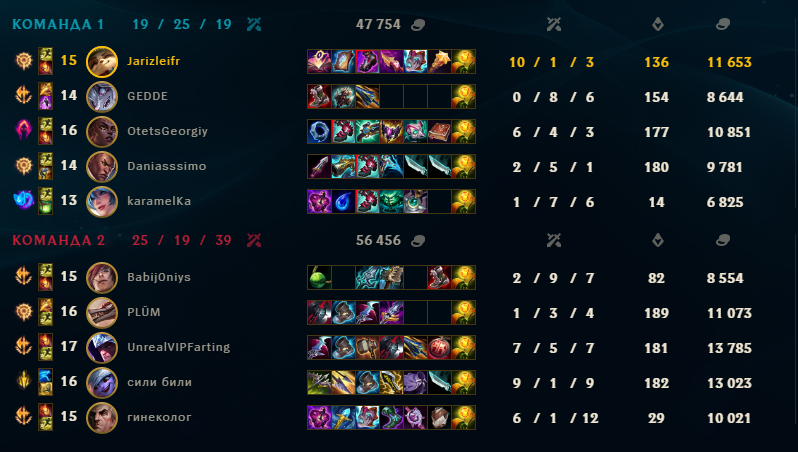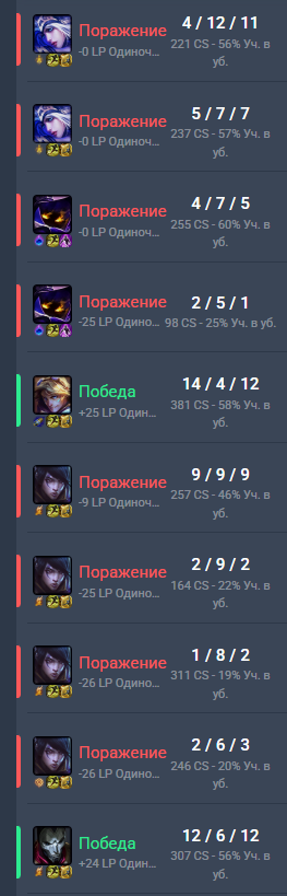 Лузстрик продолжается, на этот раз сделав половину киллов в команде я как то заруинил 2-11 фиорке с 40кса на 10 минуте и 100 на 20ой, афк говну на адк, который не пришел ни на 1 обьект в отличие от вражеского и дианке в миде, которую фармили каждую минуту, ну загангали уебка пиздец, сам с леса прихожу ему помочь он даже под собственной вышкой ссыться в чела прыгнуть, когда я прихожу к нему)