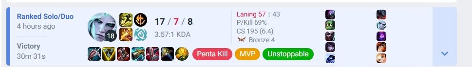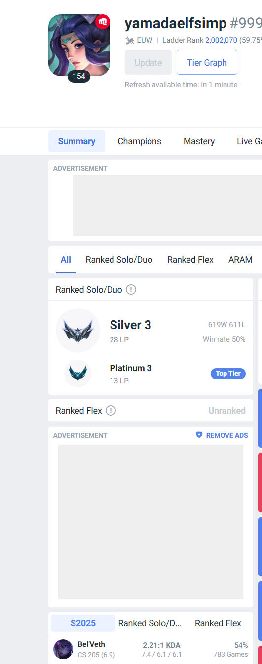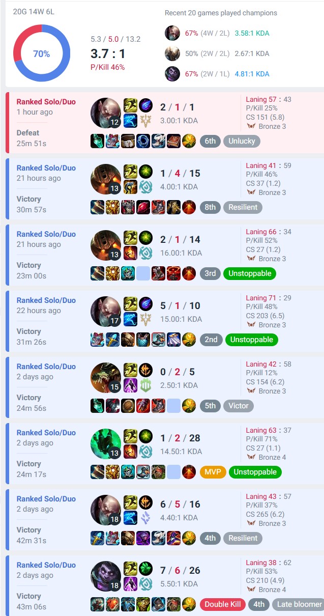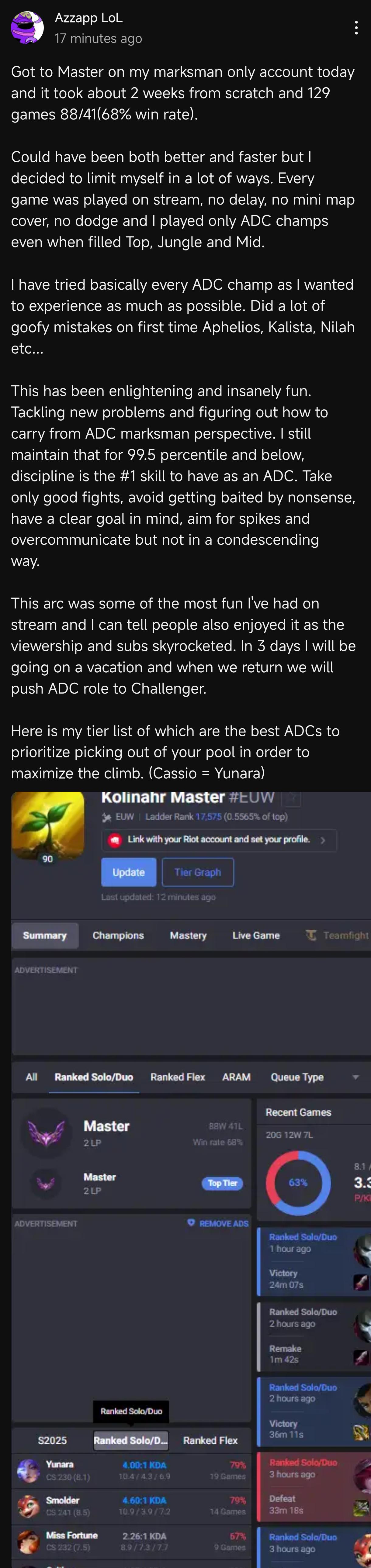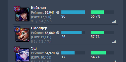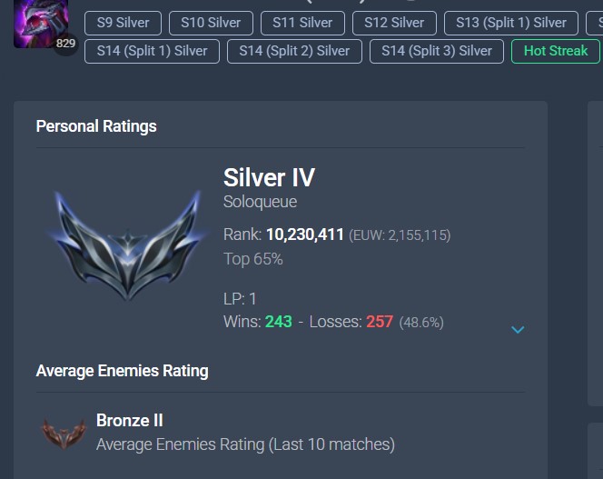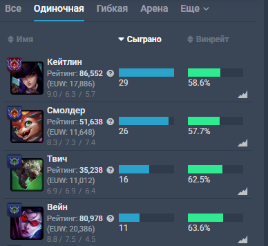 >>50091534 Вот третий акк с моего скрина, который еуне юнара, выбирался из железа 4 в этом сезоне. Есесена там было и дуо наверняка и это еще и еуне сервер, но все еще по сути застаканный акк и 90 игр с ж4 в гм.