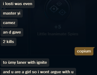 Т.е ты набил 10 фрагов на нем, а дальше что? Интересно, что люди до эмеральда (а иногда и выше если это топеры) не понимают что пусть у тебя хоть 20-0 будет, но если ты продолжаешь 95% игры стоять против 0-20 дебила - это ни на что не влияет. Че толку с твоего откорма если ты его не можешь быстро реализовать и съебаться со своего лайна в те тайминги когда это нужно