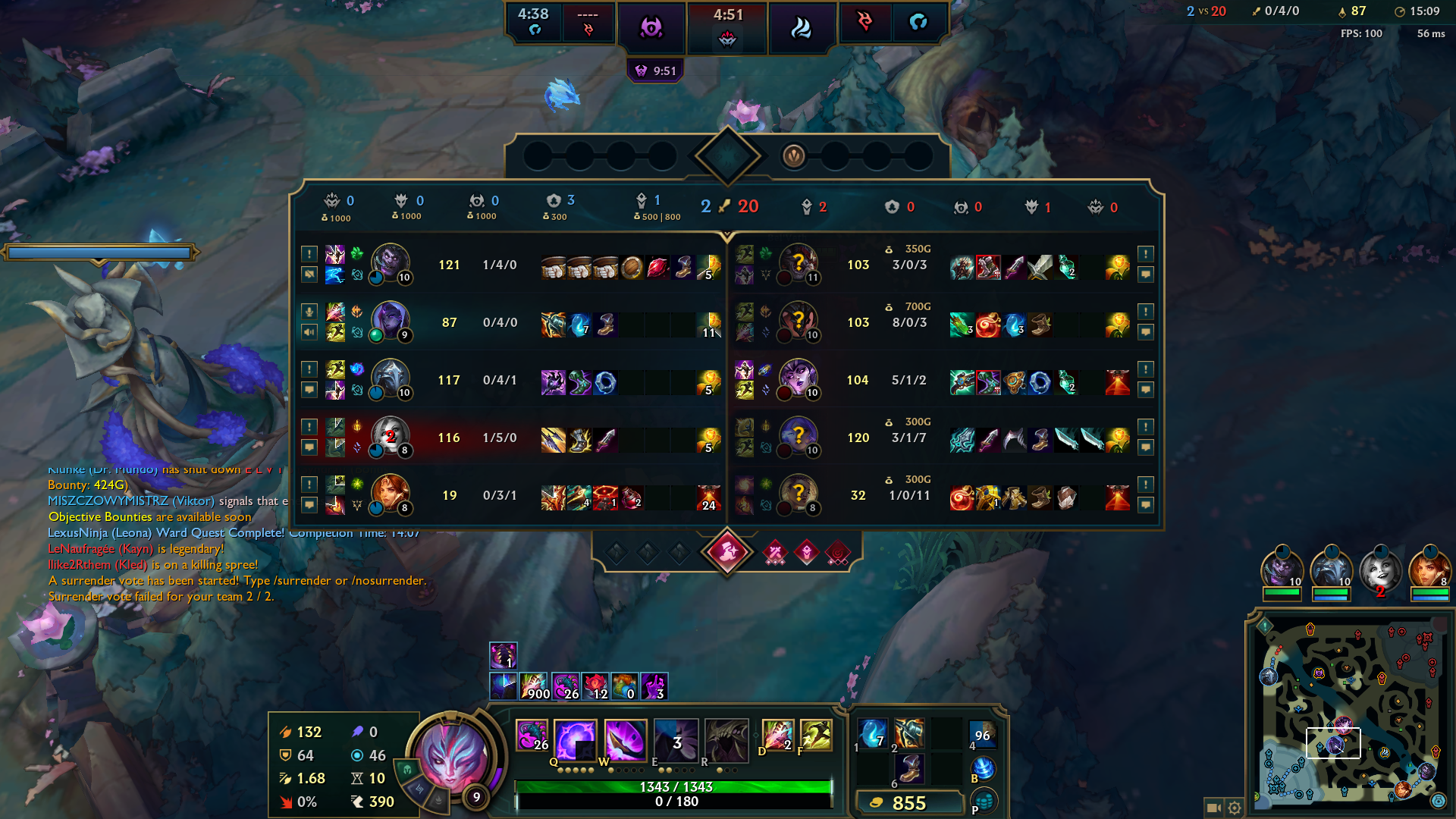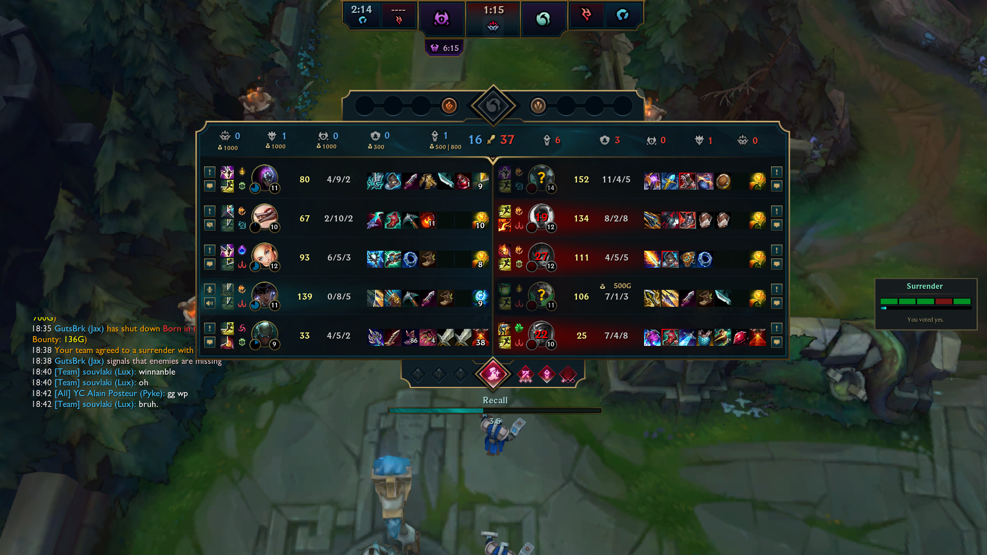 Я в этой игре показал люкс отношение и 3 раза нажал нет на сурендер воут. Топ и мид спасили сурендер. А потом оказалось что противники не могут использовать своих чемпионов и могут только об раммуса убиваться.