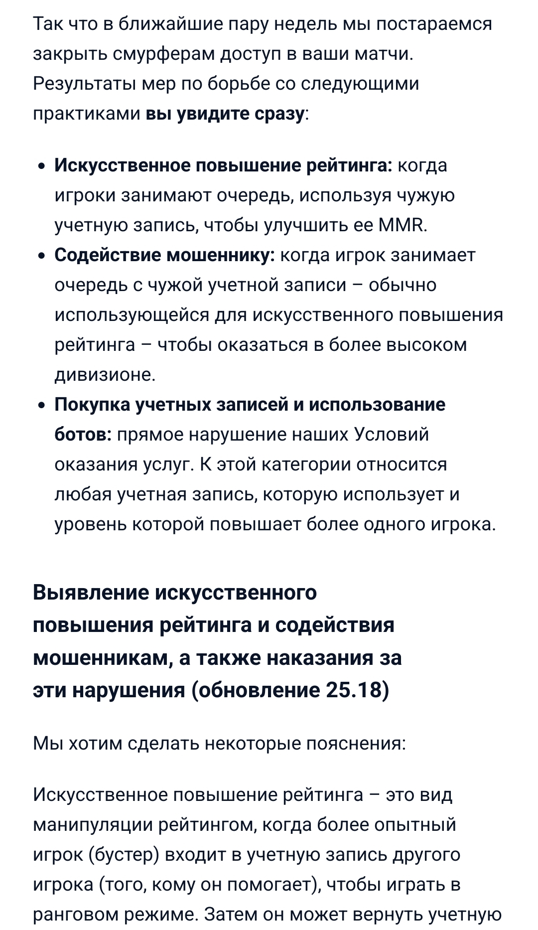 "Наша команда по анализу навыков пришла к выводу, что наказание было чрезмерным. Мы уже сняли блокировку и приступили к пересмотру системы, которая слишком полагается на KDA и количество смертей при вынесении санкций."