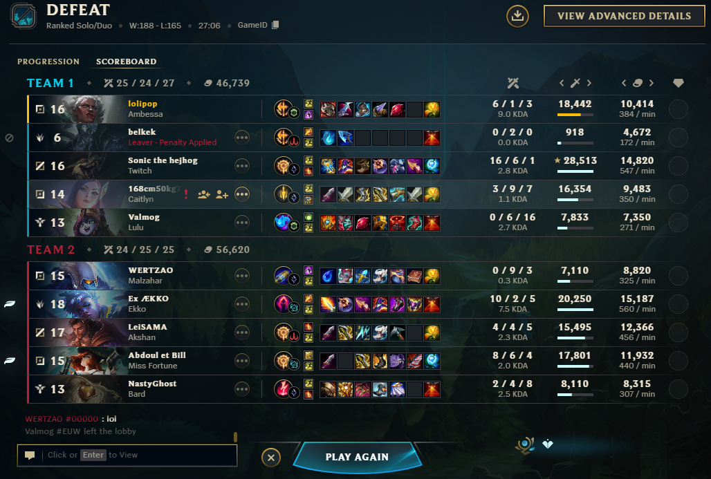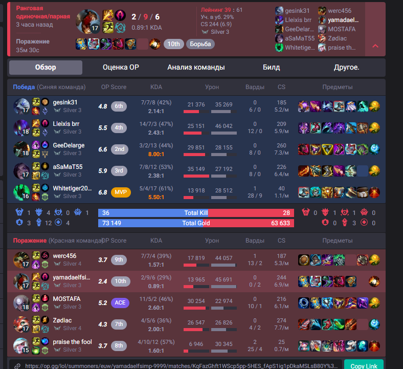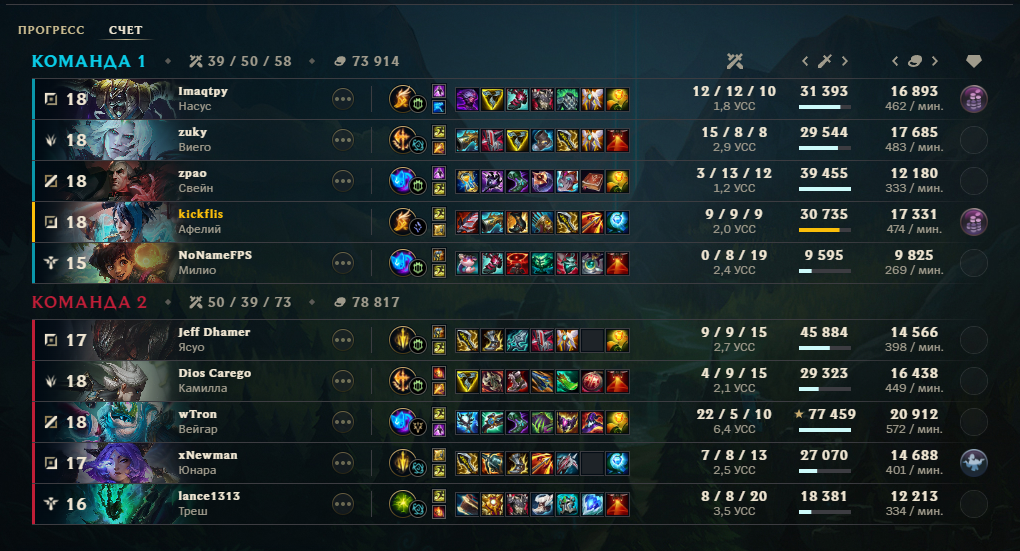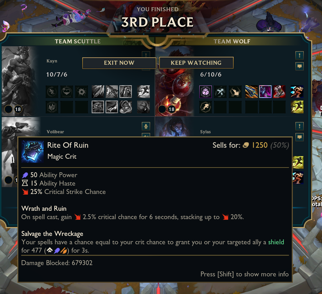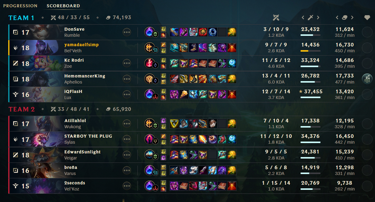 честно, такое дизморалит больше всего. я на этом моменте понял что мне остается только надеяться на команду. моя игра закончена. почему-то когда сайлас умирает два раза его чемпиону позволено продолжить играть дальше, скейлиться и прочее, хотя его чемпион силен в эрли и мид гейме, он не выпадает в лейте, ему позволено собирать лучший айтем в игре - жоню не руиня себе билд при этом, в то же время мой чемпион может сравниться с его силой только в эрли гейме и надеяться засчет этой силы засноуболлиться, да, я отыграл неидеально и умер два раза, но почему сайлас даже когда шел 6/9 мог сделать трипл килл, а я когда умер два раза в начале игры уже не имею право играть в игру? мне кажется, что это не очень справедливо. зацените, чел сдох 12 раз и все равно нанес 34к урона. я просто в шоке что позволено его чемпиону и настолько мало позволено моему. это просто обидно
