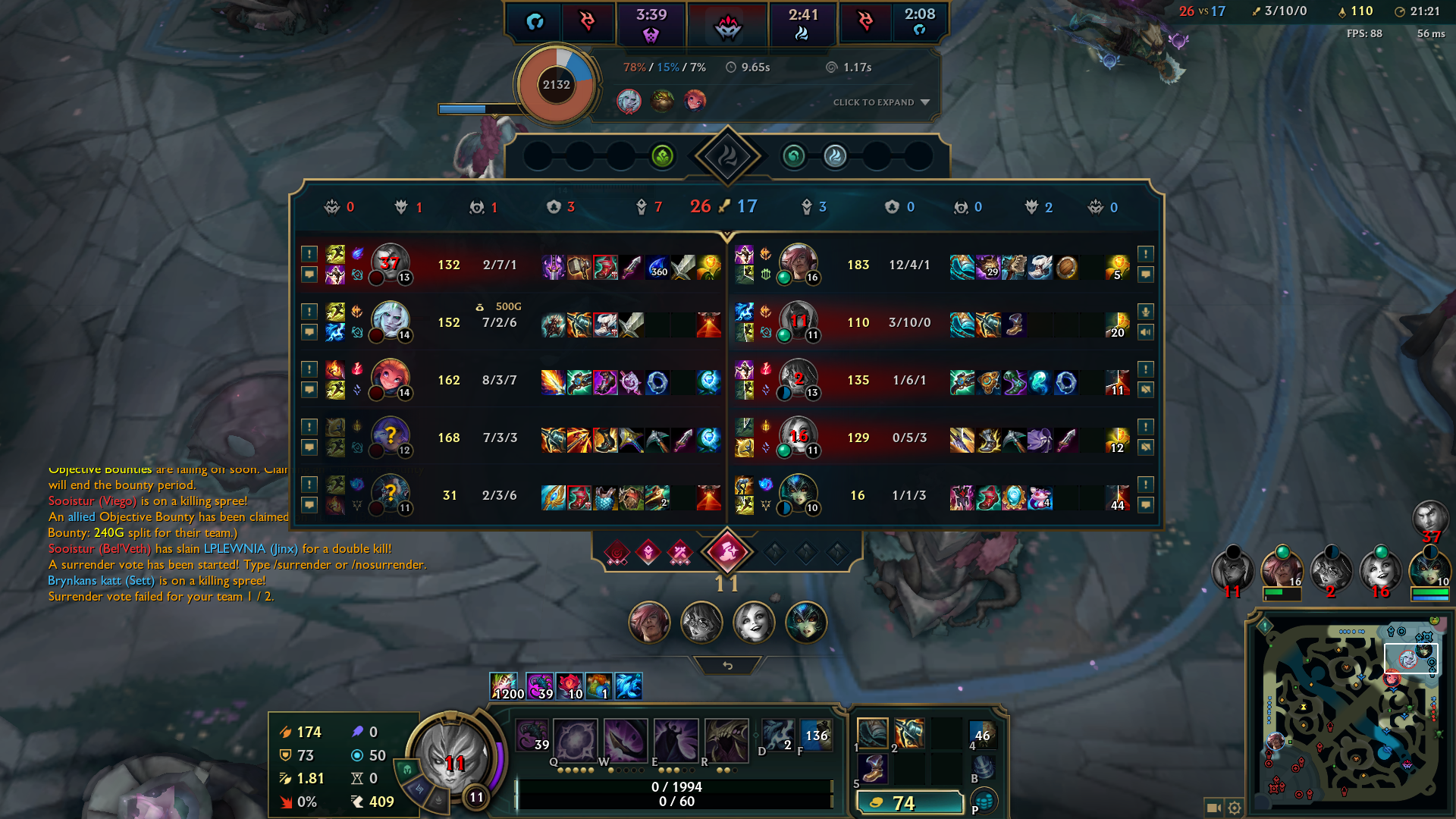 На сколько я понимаю мы проиграли , кроме того что пати ёбиков которые дохли по кд, в основном потому что у нас не было танка. И мне в топ нужно было пикать танка. Но я просто угасил топ, снёс башню за 15 минут и щемил весь топ карты. Думал этого достаточно чтобы мид и низ дышали свободно.