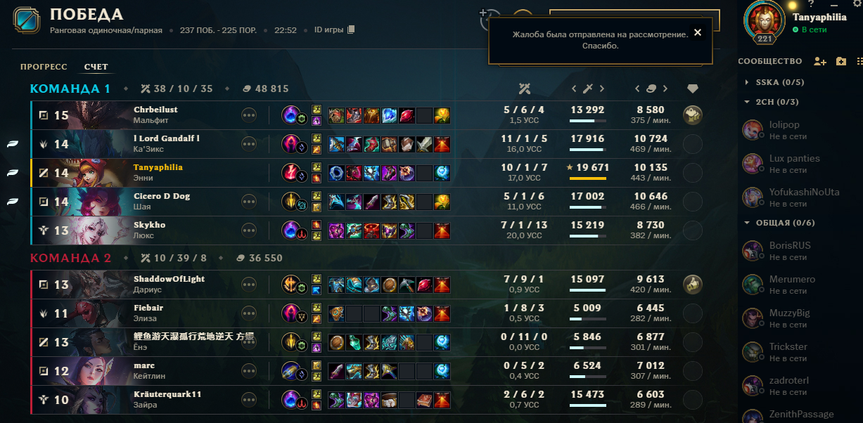 Мое ебало как кейломейнера не поддается описанию, когда мой уёба с топа пикнул ее после того, как была взята фиора. эта игра была проёбана с лобби. так и оказалось. мало того, что уеба насосался в лейн фазе, прямо и неприкрыто нафидив, не играя сейфово, так еще и оказался фёрст тайм кайлой. уёба с леса взял 1 обьект за всю игру и отдал все без боя, проигнорив все остальные. пидарас черный с мида просто стоял жопой приклеившись к миду, пока йоне не стеснялся роумить и набивать киллы с ассистами. я не верю, что у меня в команде не было 3 бота самого лёгкого уровня сложности (треш хоть хуманом был с хуманскими хуками), но вдвоем это было не выиграть.