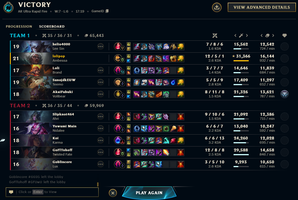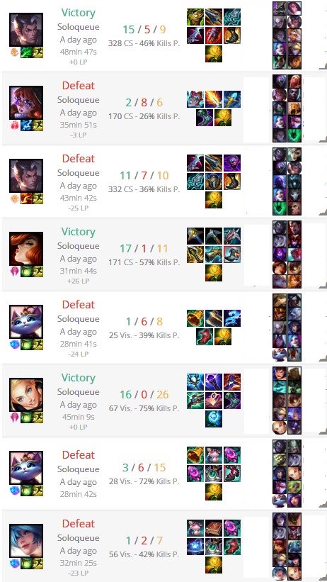 >>50191763 зачем мне скринить игры где я по приколу пикаю чемпионов и совершенно закономерно проигрываю, тут вейн была взята в предельно ужасный пик из двух ассасинов, на фиддле у меня просто винрейт в районе 15%, у меня нет претензий к тиммейтам в таких играх