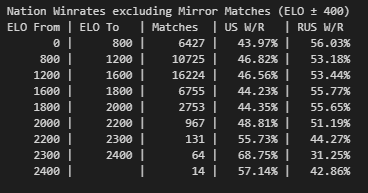 По этой же причине на абсолютном топ эло рейтинге США имеет винрейт 60%. А на всех остальных 40%.