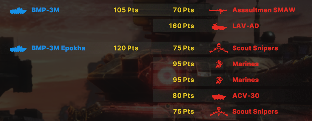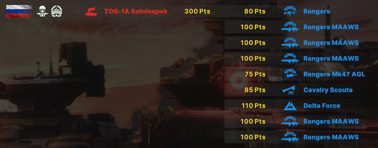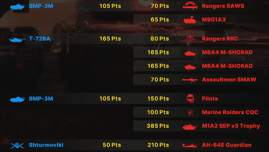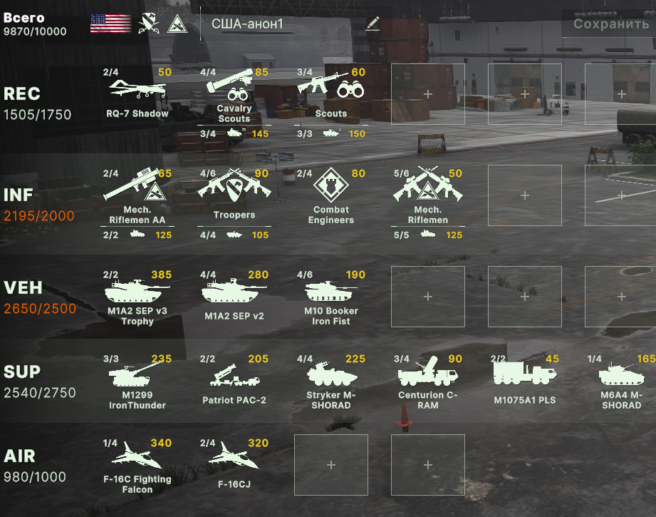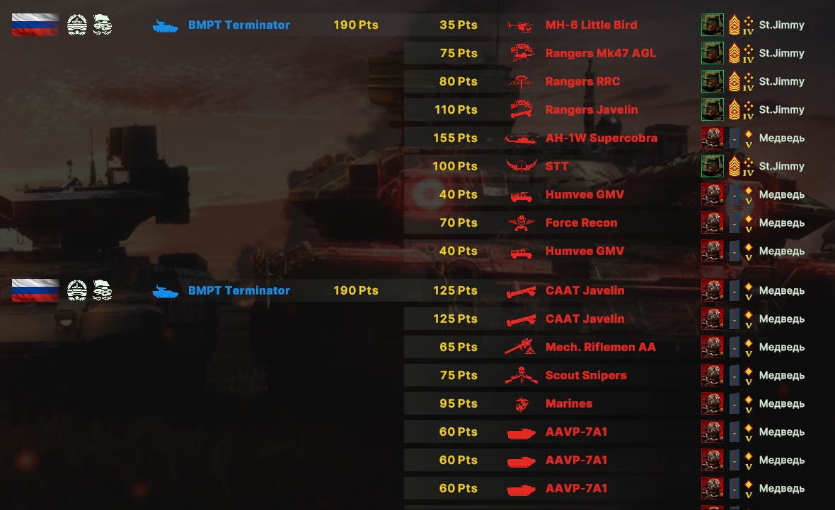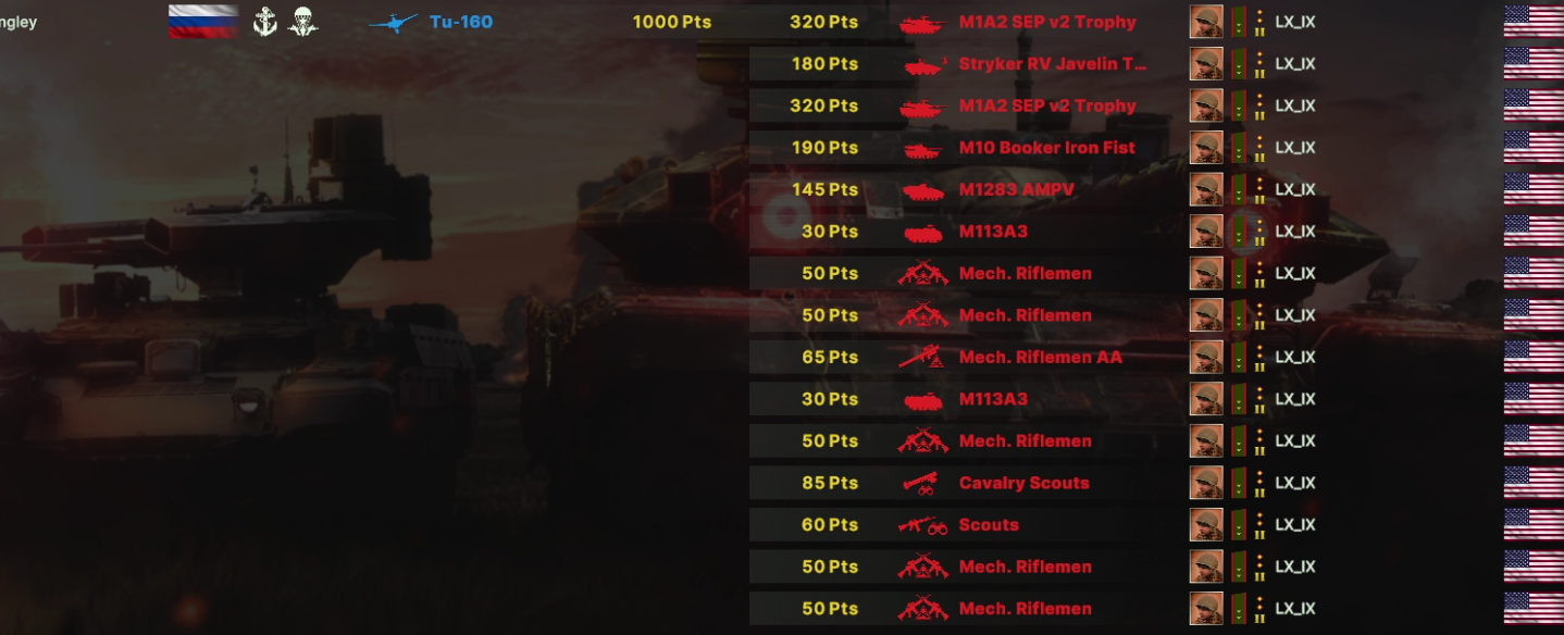 Там очков не хватит взять всех юнитов. Для спама на захват точки лучше подойдут инжырнеры +ассаулты. Для закрепа самый топ будет КААТ тоу, потому что их ебаный пулимет делит на ноль любую пехоту.
