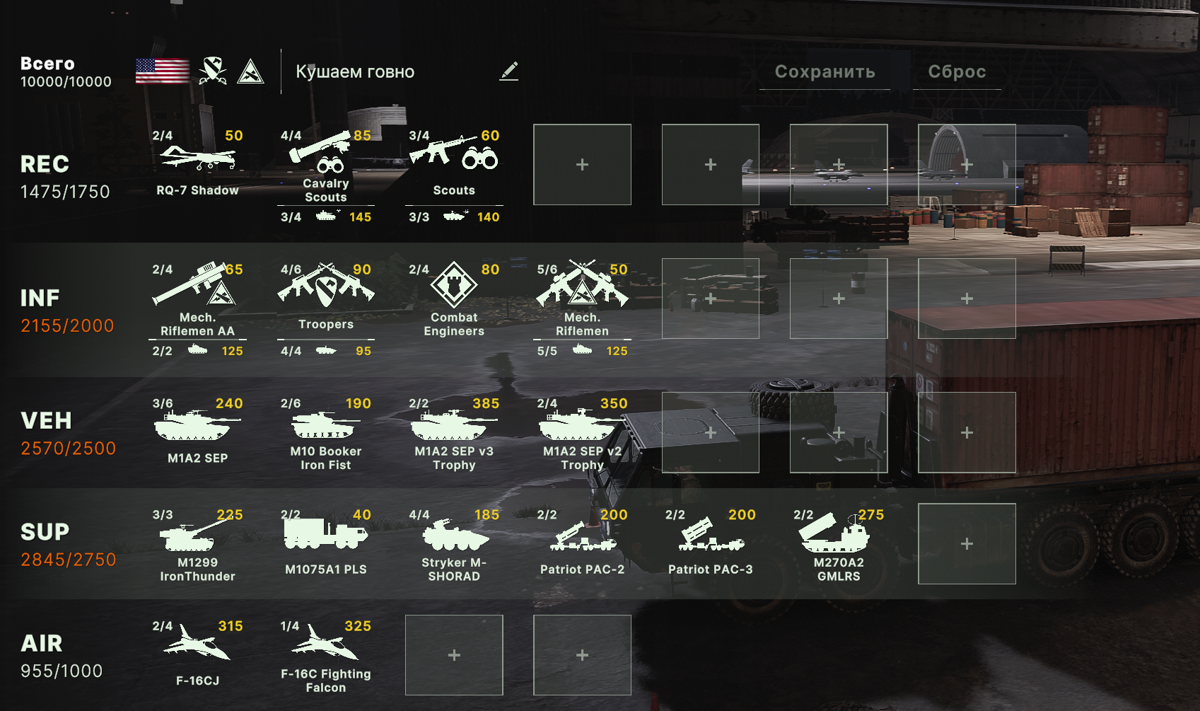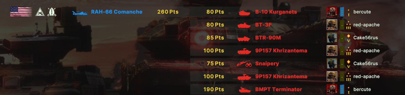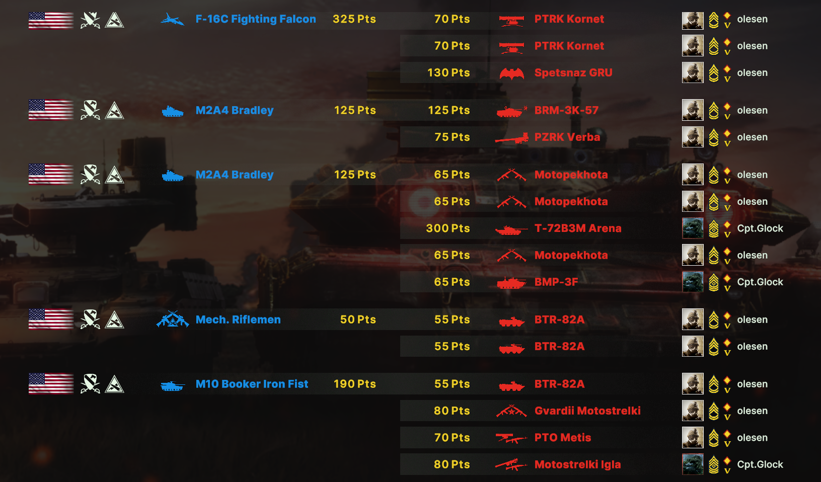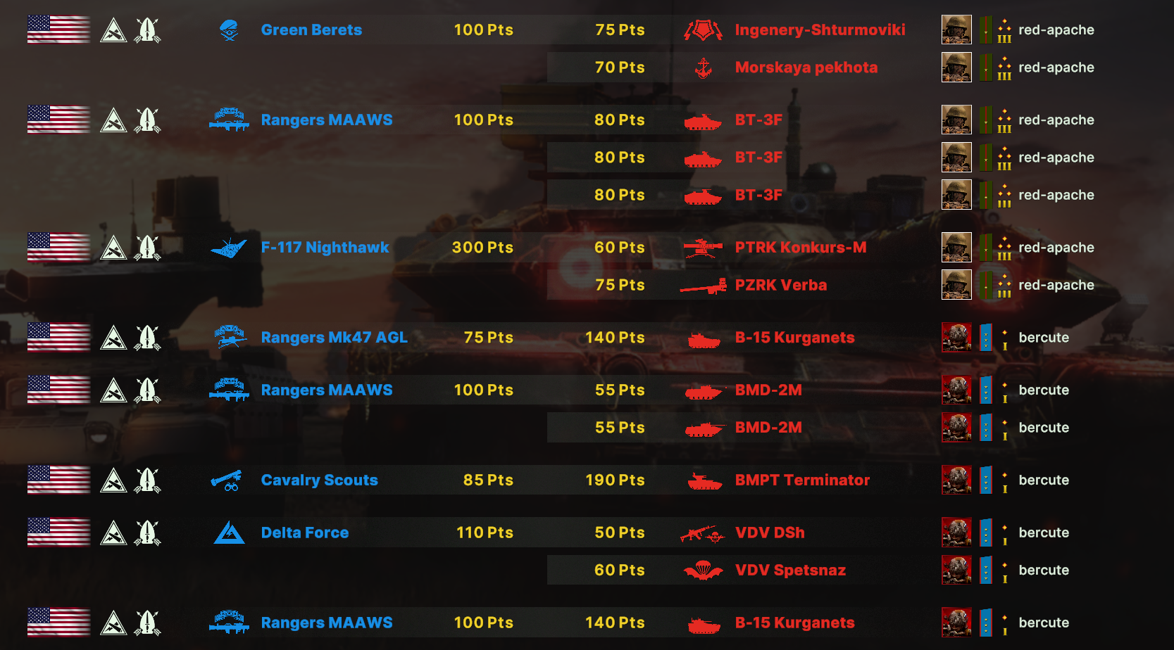 Там очков не хватит взять всех юнитов. Для спама на захват точки лучше подойдут инжырнеры +ассаулты. Для закрепа самый топ будет КААТ тоу, потому что их ебаный пулимет делит на ноль любую пехоту.