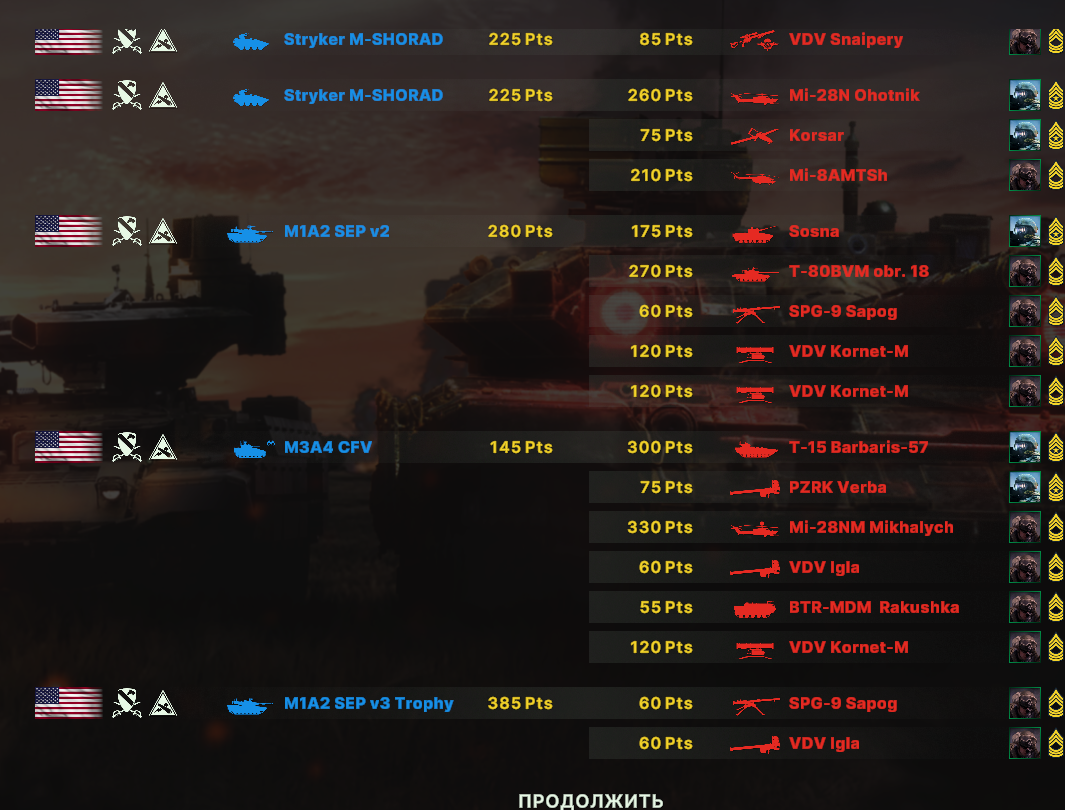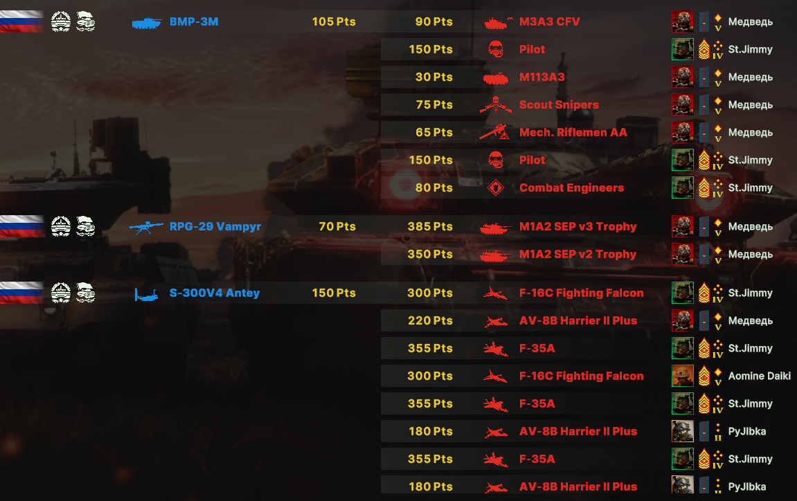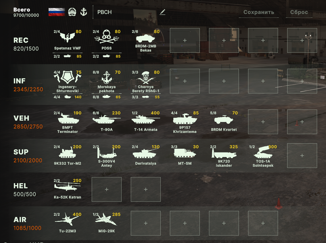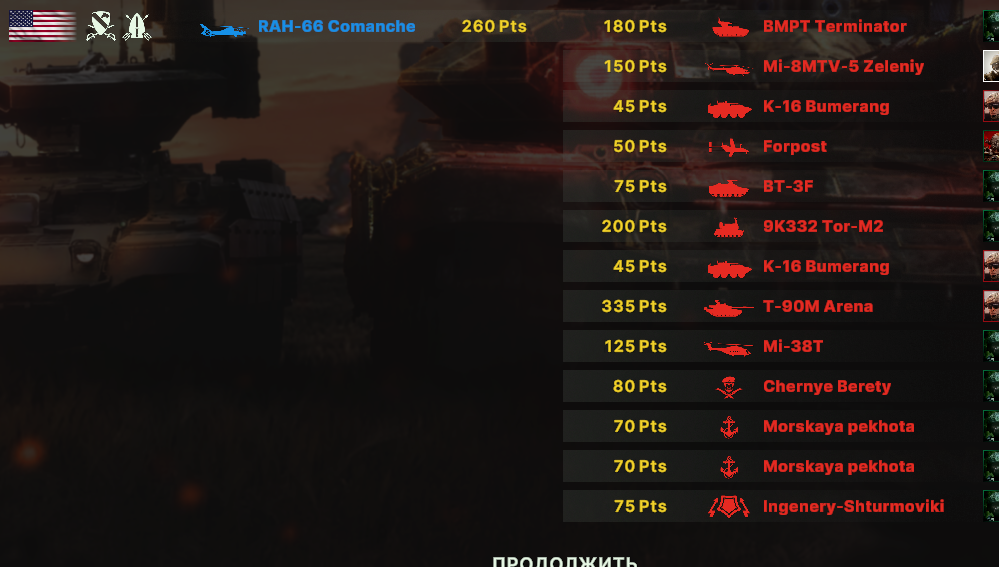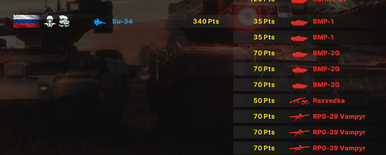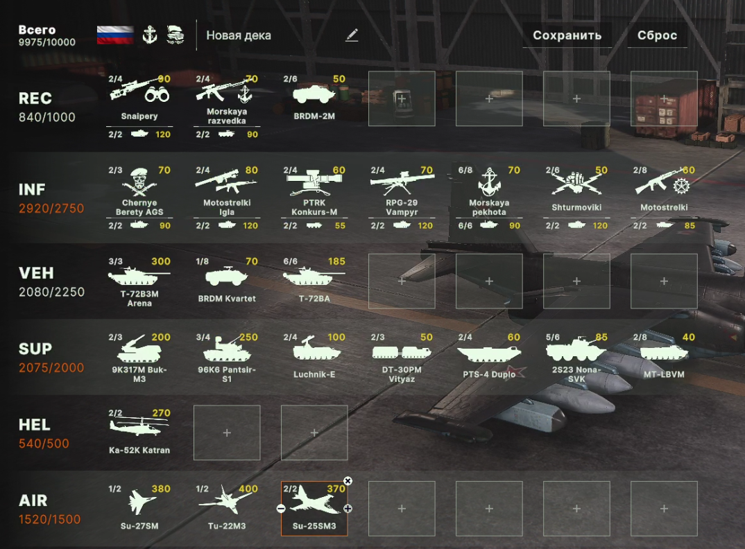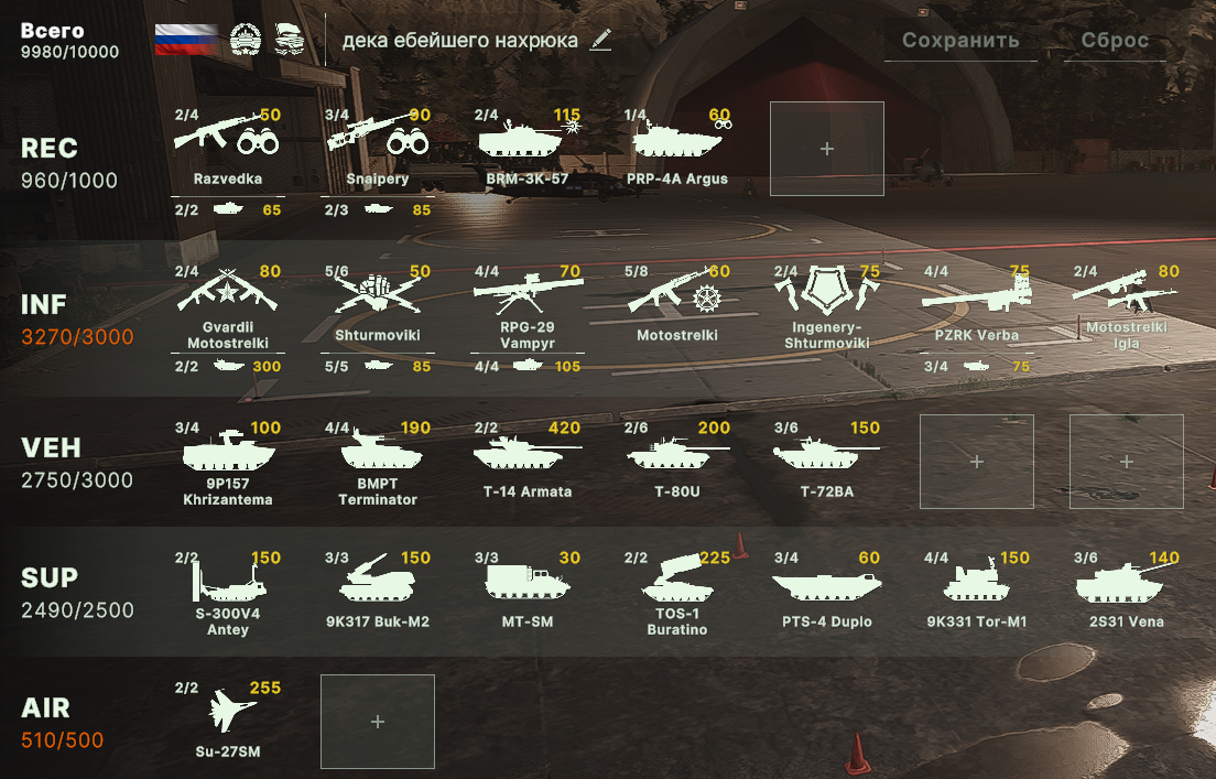 Но учти, норм игрока на РФ эта дека не выебет, у неё вообще задача, закрепиться где то и начать саппортить ПВО+авиация и выбивать вражеское ПВО, ну и птурами можно делать весело. Потому она очень зависима от команды. Это тебе не Мех+ВДВ РФ, где ты соло у тебя все есть, ваще все и ты тупо разбиваешь ебальники.