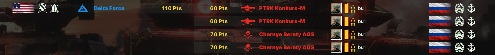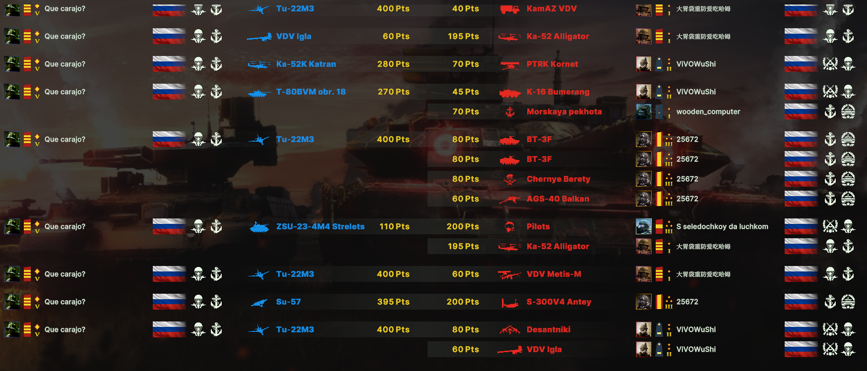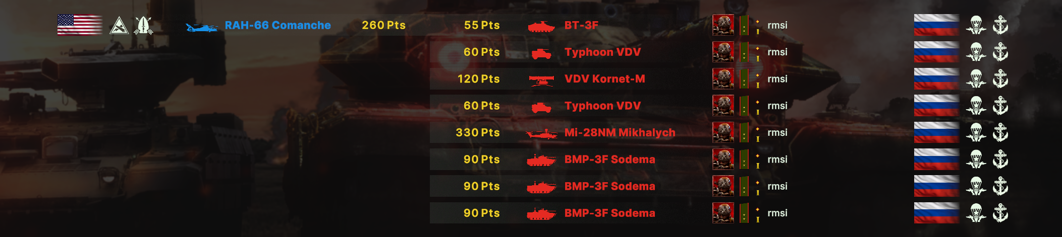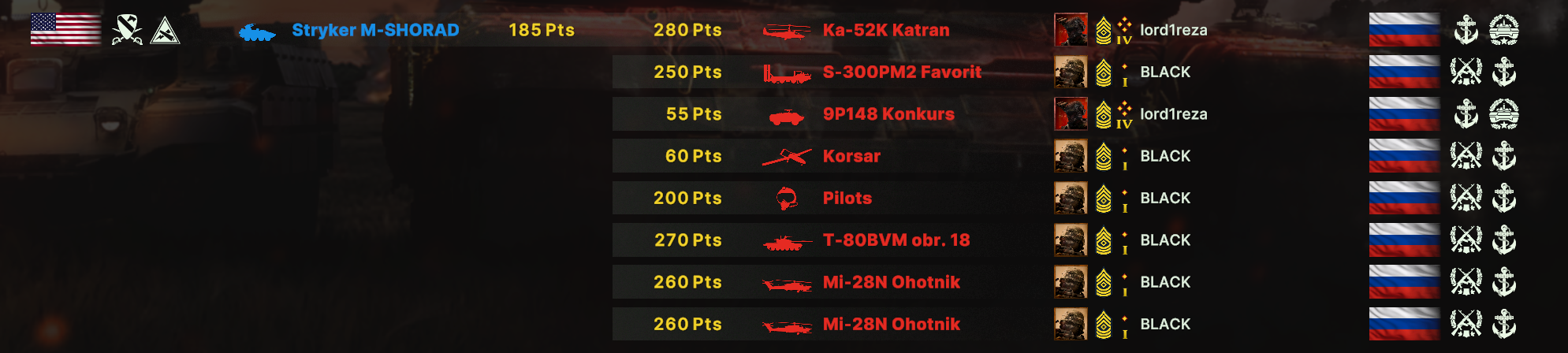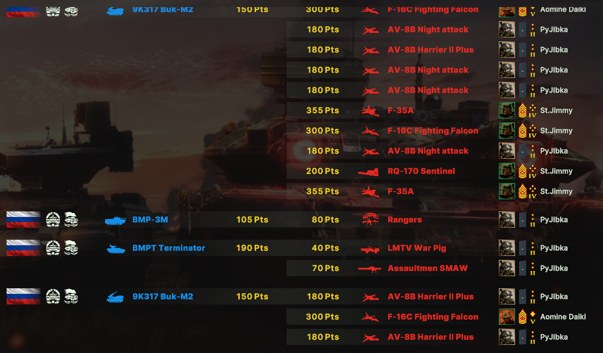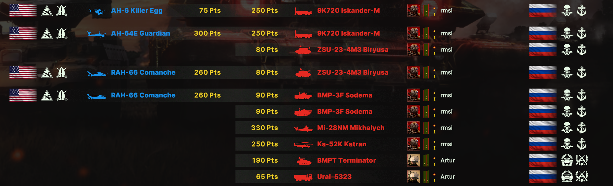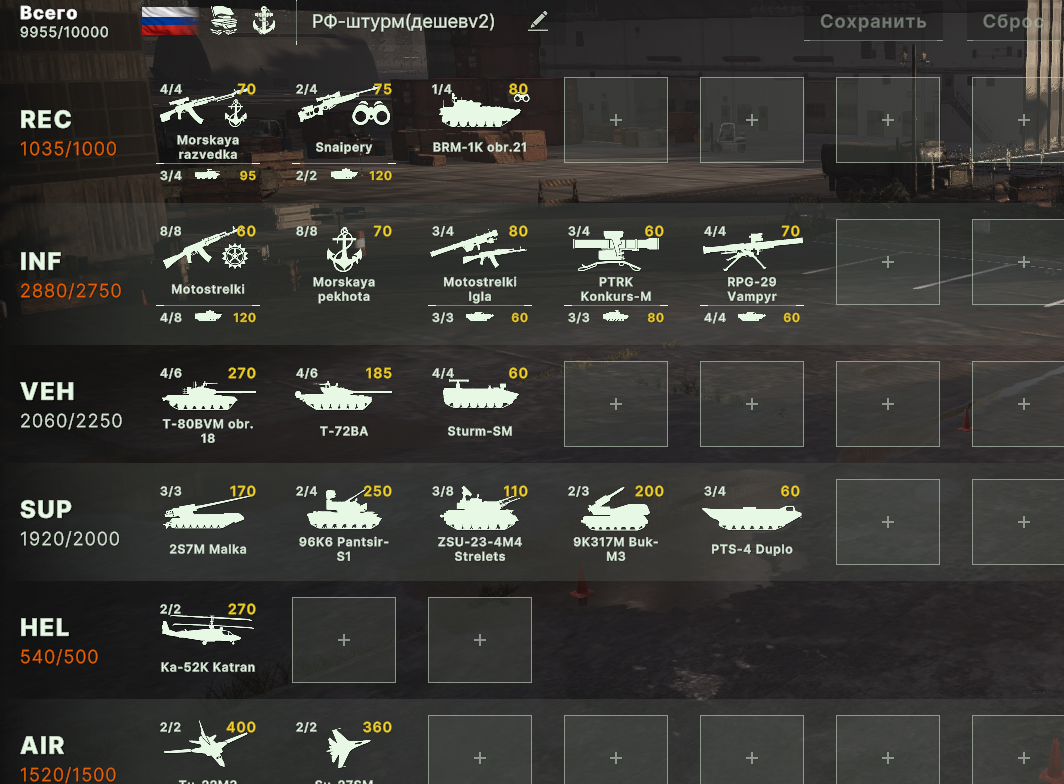 Но учти, норм игрока на РФ эта дека не выебет, у неё вообще задача, закрепиться где то и начать саппортить ПВО+авиация и выбивать вражеское ПВО, ну и птурами можно делать весело. Потому она очень зависима от команды. Это тебе не Мех+ВДВ РФ, где ты соло у тебя все есть, ваще все и ты тупо разбиваешь ебальники.