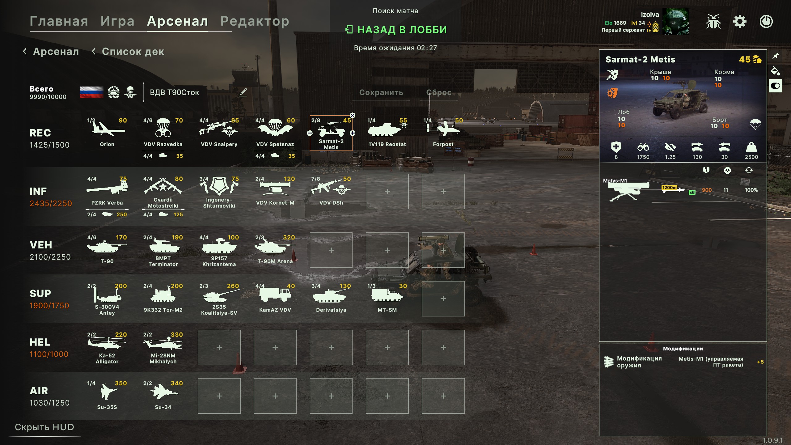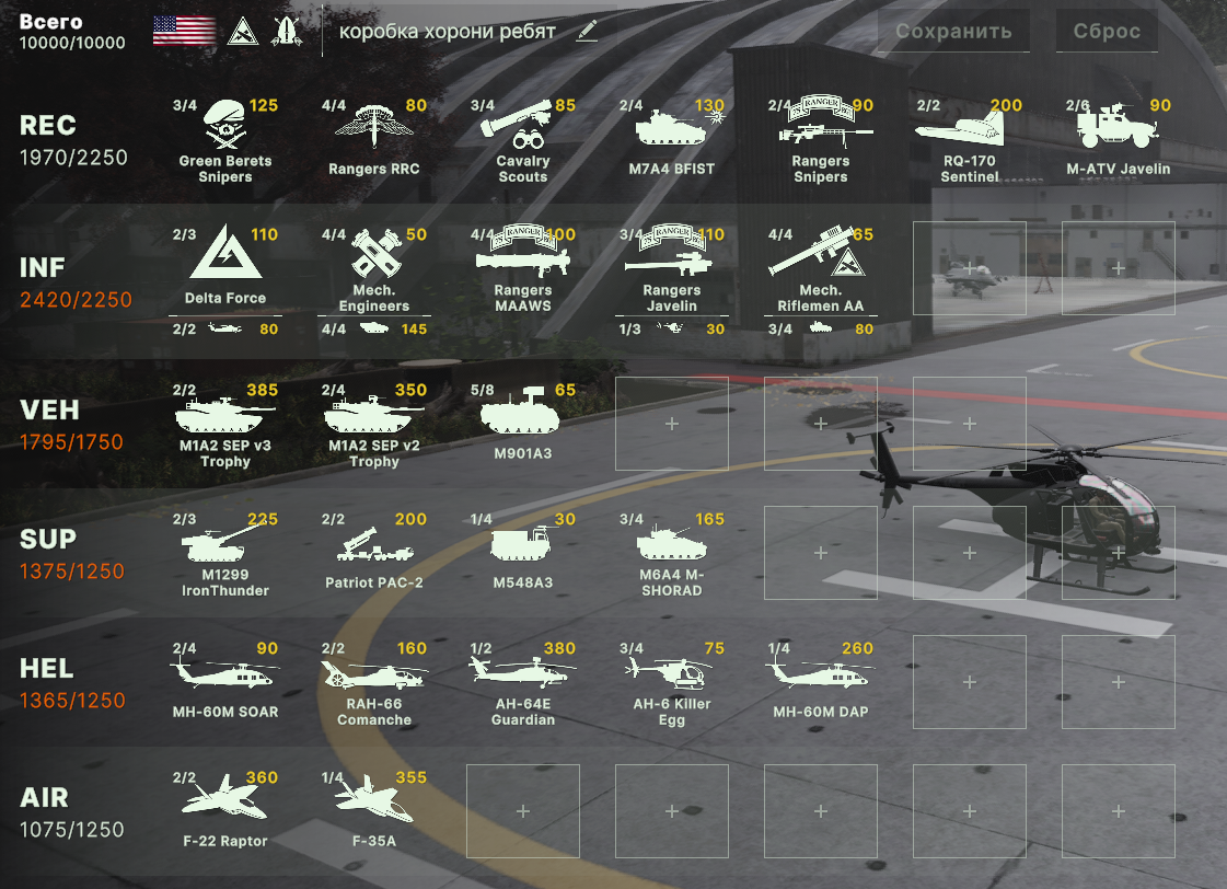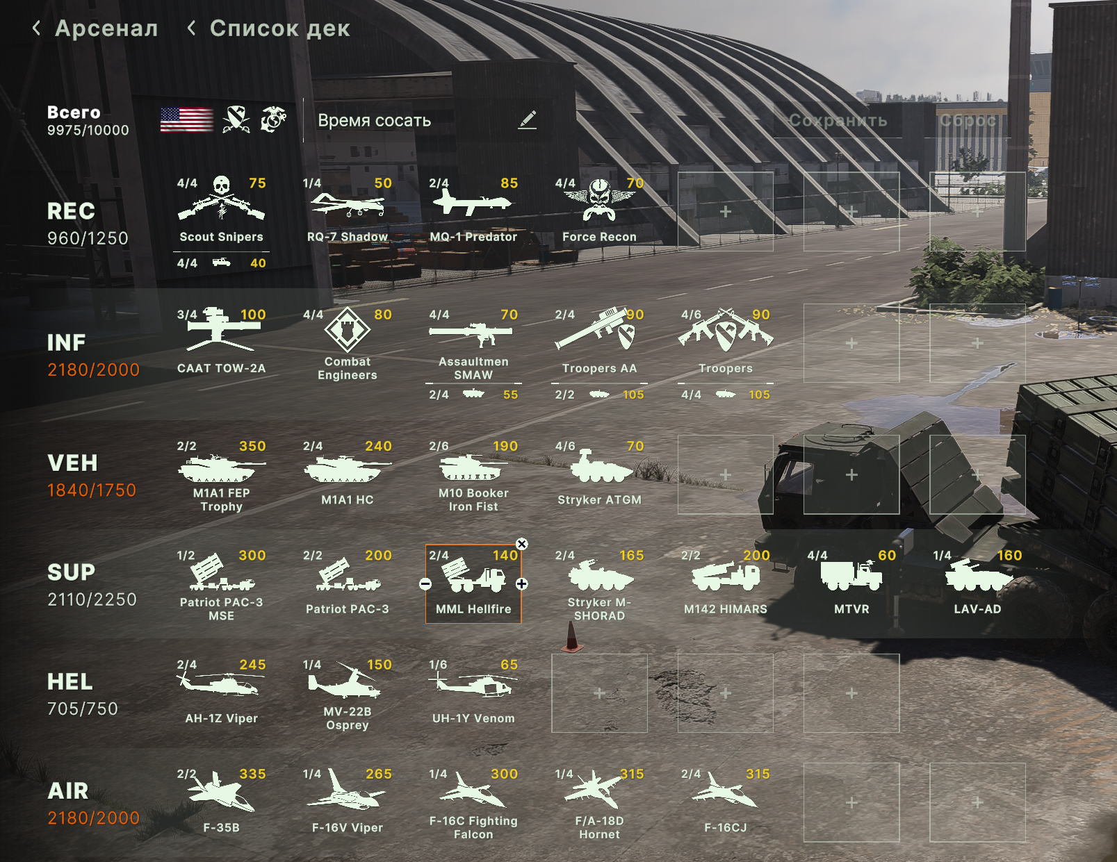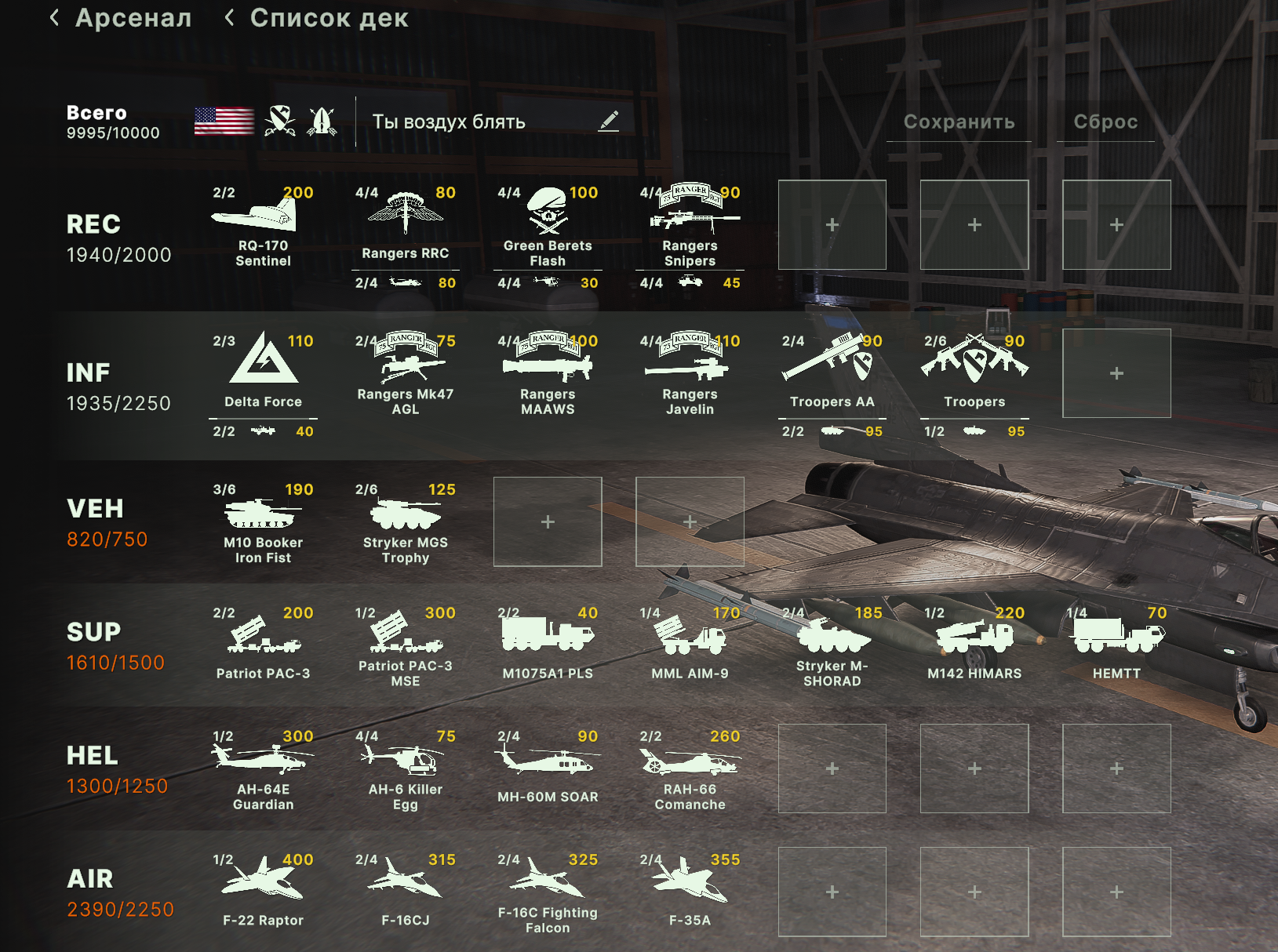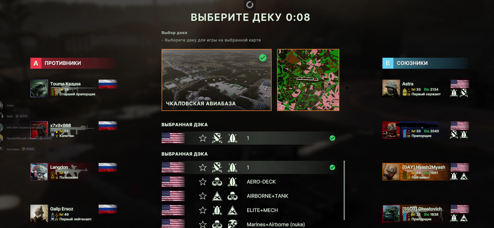 Но учти, норм игрока на РФ эта дека не выебет, у неё вообще задача, закрепиться где то и начать саппортить ПВО+авиация и выбивать вражеское ПВО, ну и птурами можно делать весело. Потому она очень зависима от команды. Это тебе не Мех+ВДВ РФ, где ты соло у тебя все есть, ваще все и ты тупо разбиваешь ебальники.