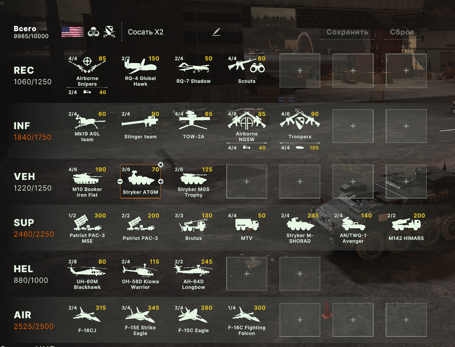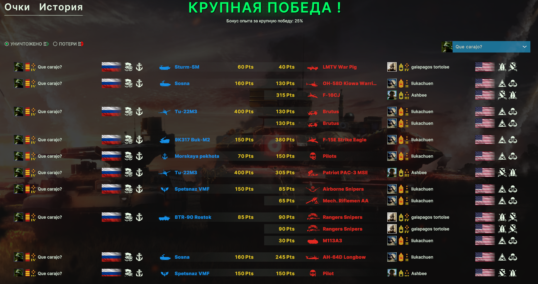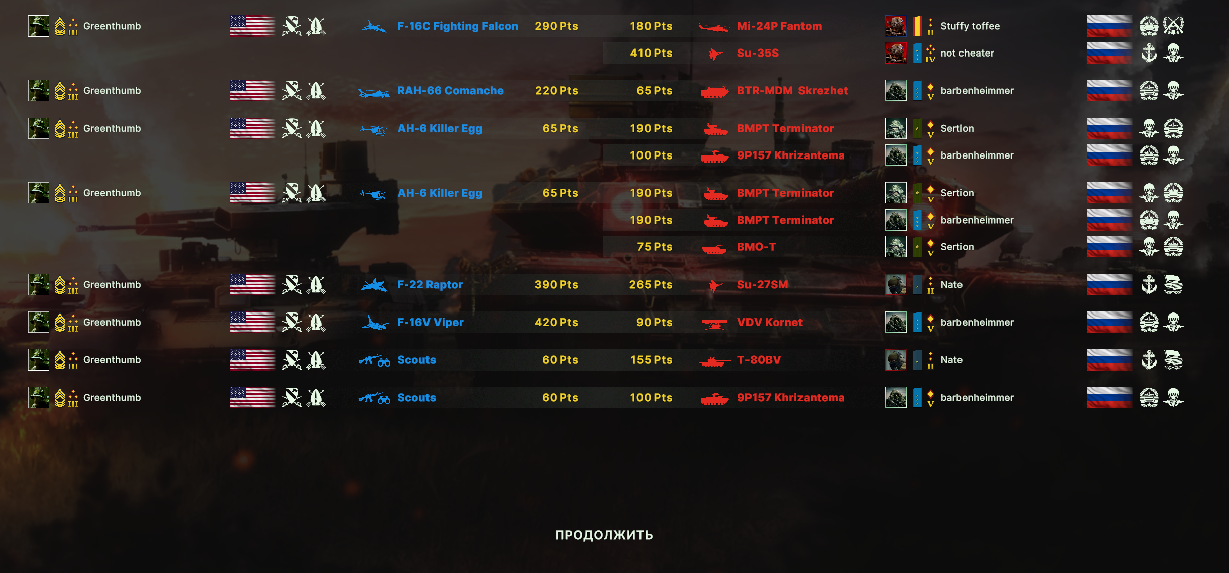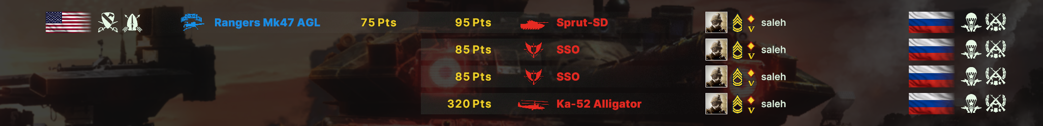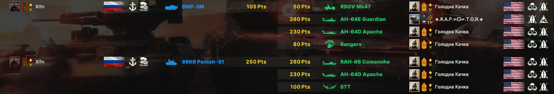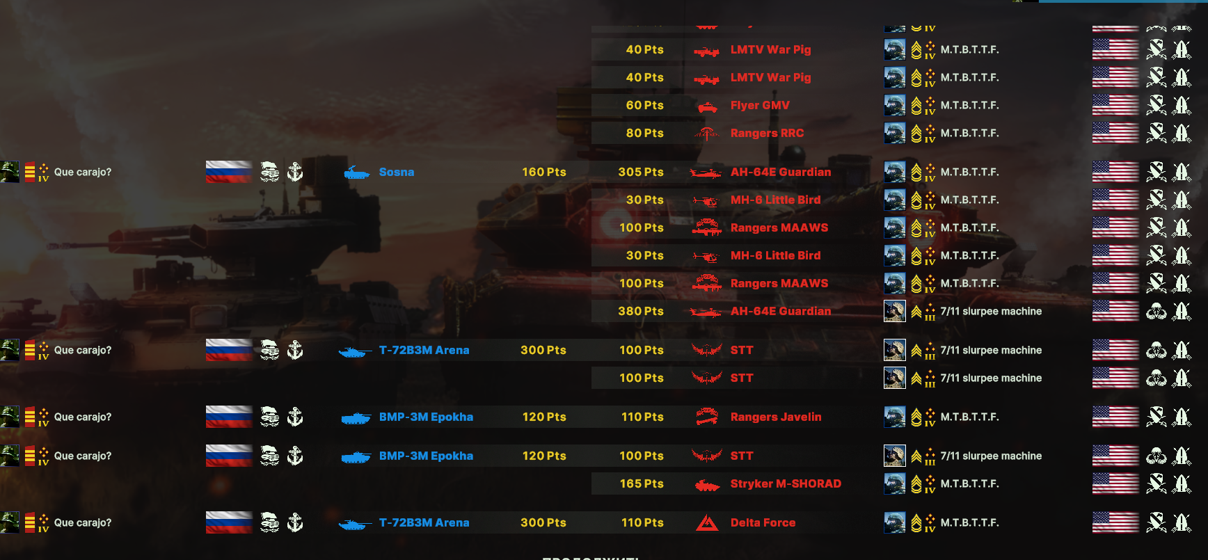 Но учти, норм игрока на РФ эта дека не выебет, у неё вообще задача, закрепиться где то и начать саппортить ПВО+авиация и выбивать вражеское ПВО, ну и птурами можно делать весело. Потому она очень зависима от команды. Это тебе не Мех+ВДВ РФ, где ты соло у тебя все есть, ваще все и ты тупо разбиваешь ебальники.