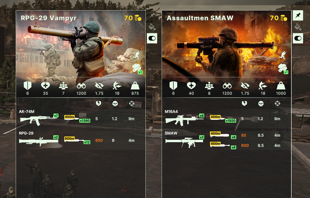 Троперсы и марины вообще сомнительны, типо марины такие же противопехотные как и инженеры, но последние справляются лучше если брать их по 2 штуки. Троперсы вообще не ебу. у них есть всего понемногу. Спамить ими на каких то картах где поля-леса наверное.