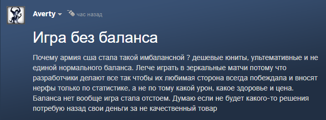 В стиме базу выдали >Мне кажется, что РФ скорее для соло игры, а США за игру в фулл тиме. Ведь реально, эти дауны думали что раз делают командную игру 5х5, люди будут играть командой. Типичная ошибка дегенератов разработчиков игр и начинающих мастеров настолок.
