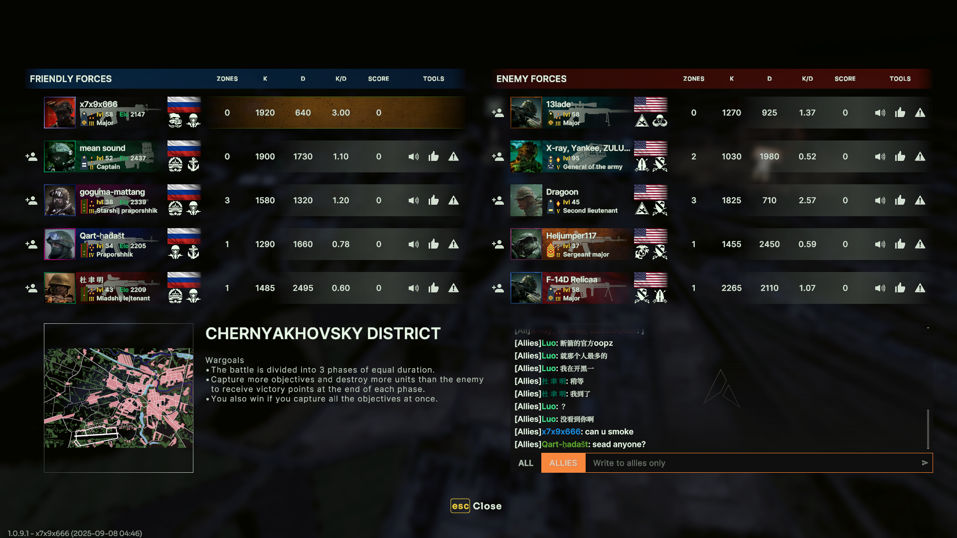 Господи ну какие же дауны китаезы, чувак играет 1х2 на фланге иии старается вечно контратаковать из-за этого на 3 фазе чуть все не пошло по пизде, ибо фланг у него полуголый и там просто двое нам впиндюрилсь так что сделали +6 по киллам, но блять мы каким то образом на своих флангах смогли зайти в точки и ебнуть на финале +6 по точкам, а у нас еще был запас 4 очка с первых двух фаз.