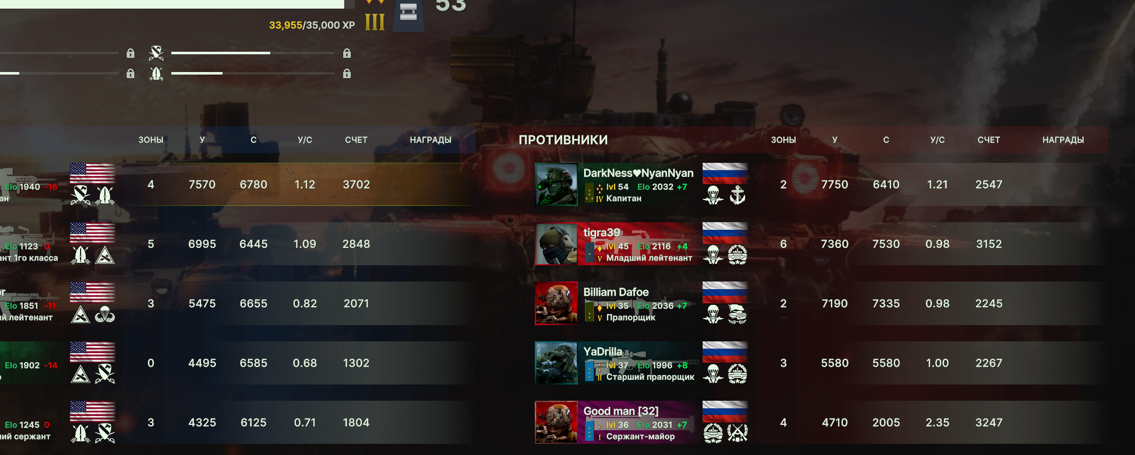 РФ лучше подходит под соло игру или плохо скооперированную игру. США лучше если вы играете трайдхард группой из 5 человек.