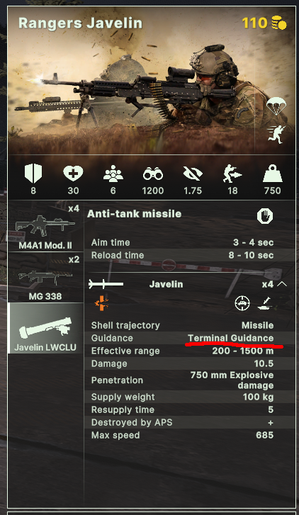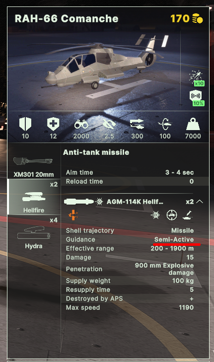 >>50206313 Нет, там полуактивка. Именно у команчей ради баланса, понимать надо. Но джавелины и труперсы активная головка наведения.