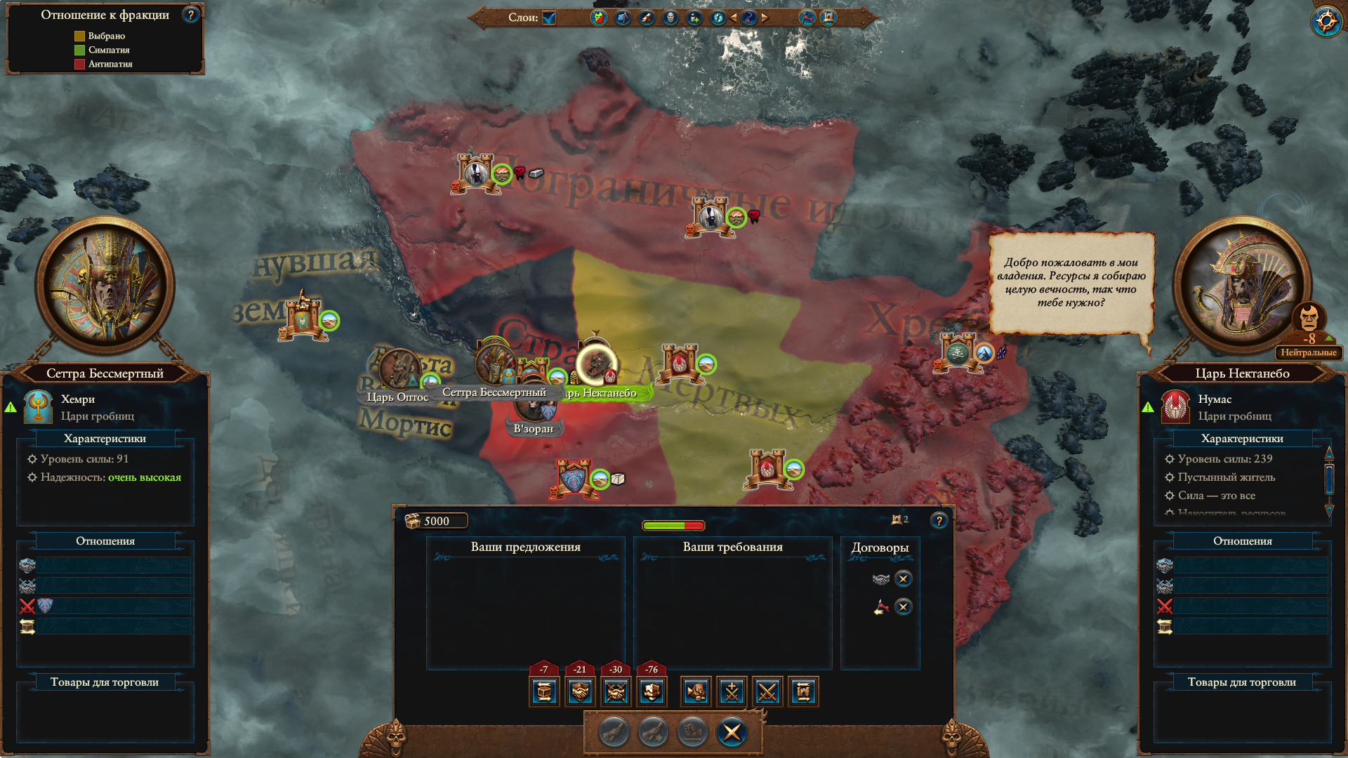 А вообще тебе стоило не союз с ним заключать, а захуярить его и снять с него меч Кхейна. Он вроде в районе 15 хода его самым первым во всей игре берет, если его раньше не убили. А Нкари с мечом Кхейна тебе бы всё вынес.