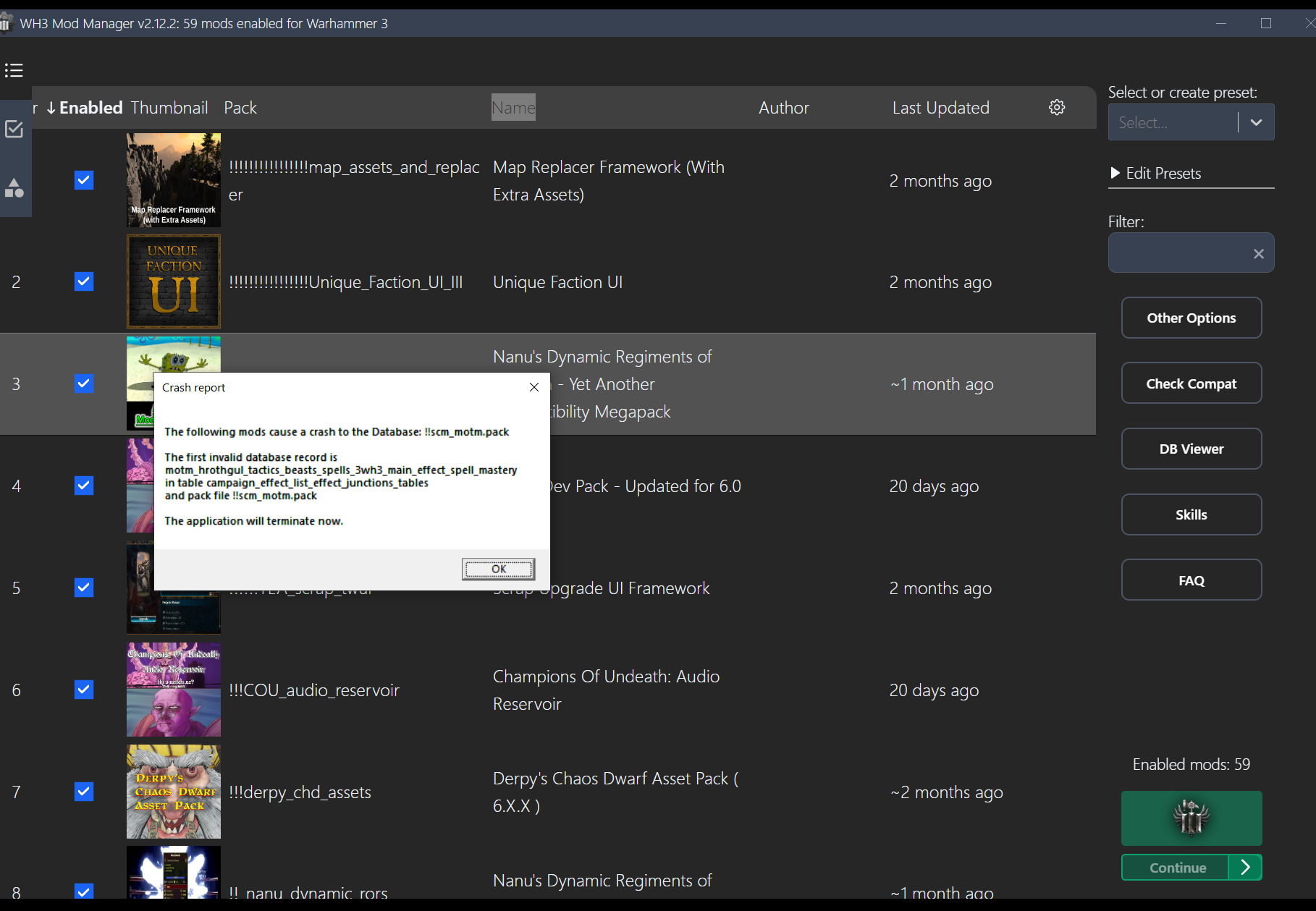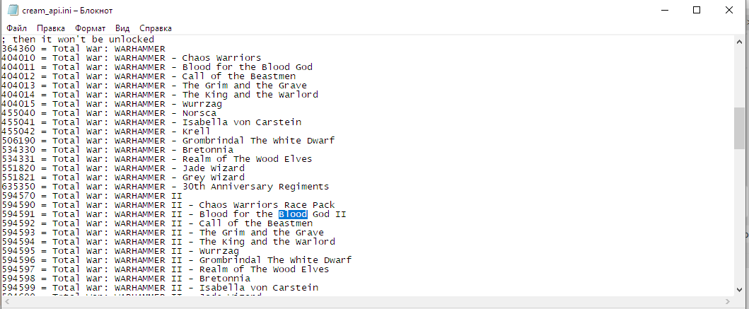 >>50179267 >>50179284 PS Для проверки этой теории - открой-ка файл cream_api.ini и поудаляй оттуда все строки с Blood for the Blood God (их там три) и сохрани. Если всё заработает после этого - это точно оно.