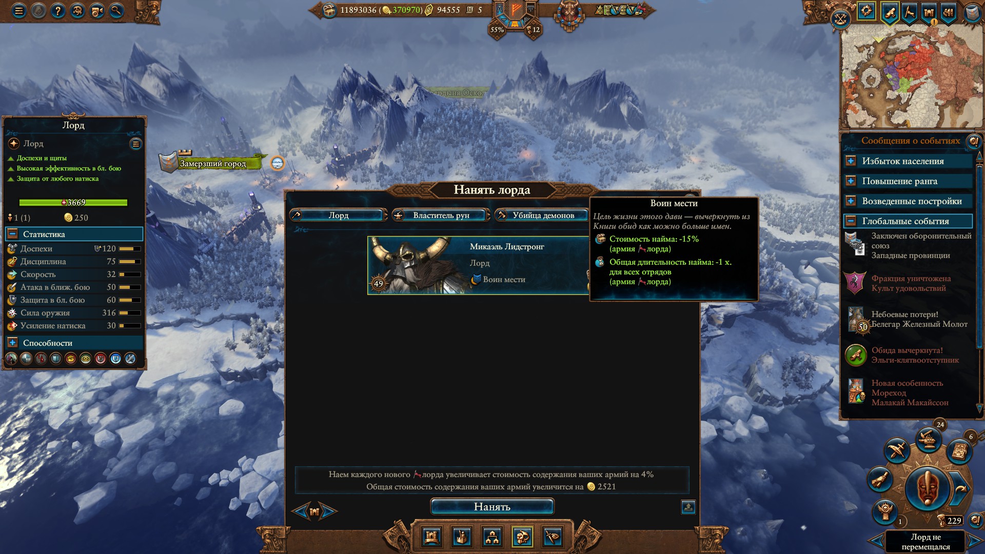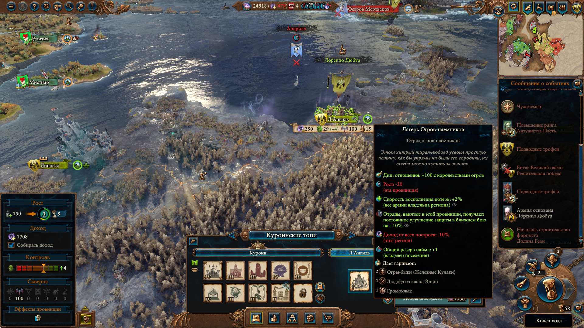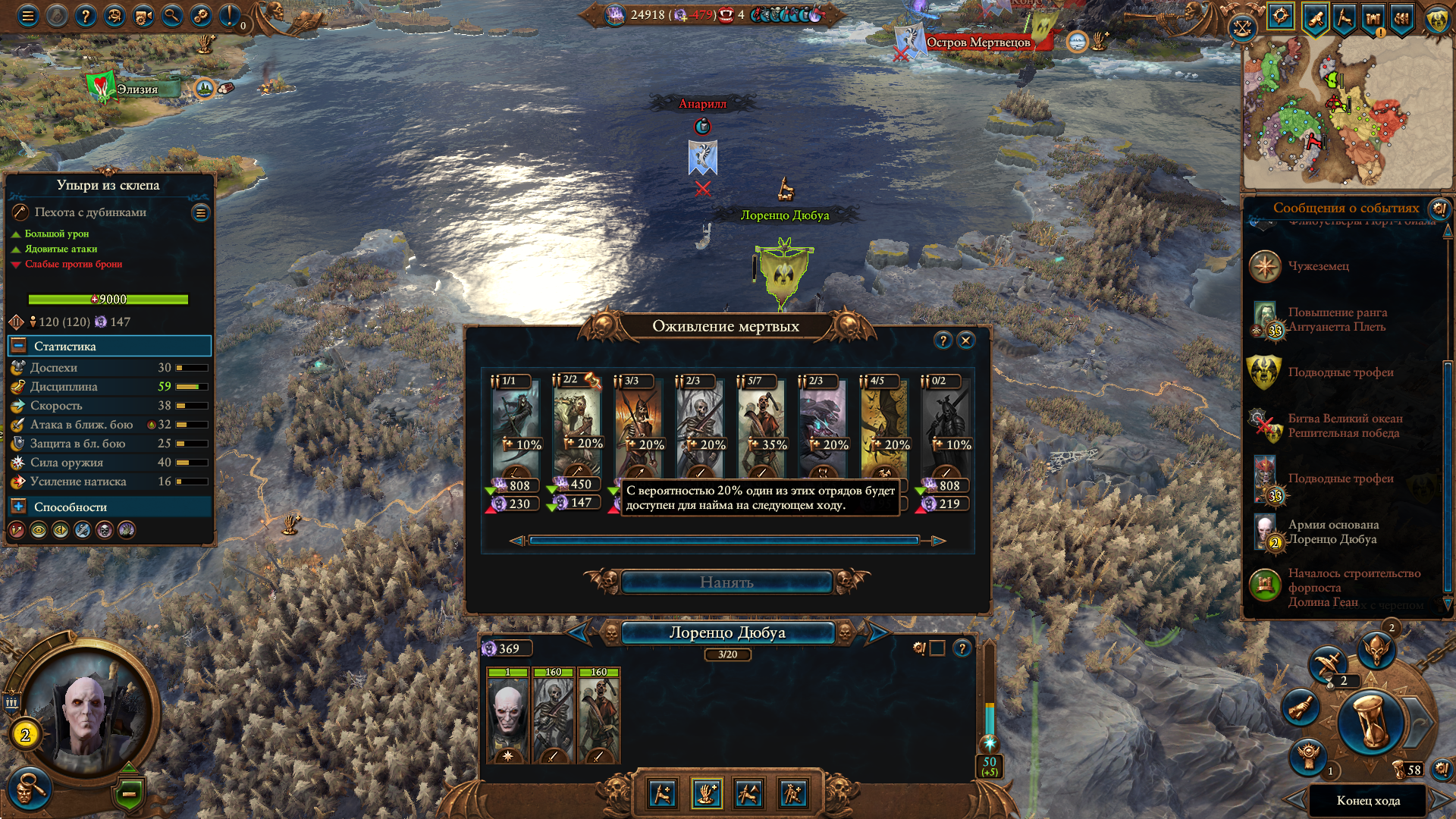 Армия состояла из Морати, Сюзерна, 8 пиратов черного ковчега шнепперов и 10 темных панцирей щитов, второй лорд маг огня. Под конец нанимал теней, но они очень дорогие, я не мог позволить себе экономически их.