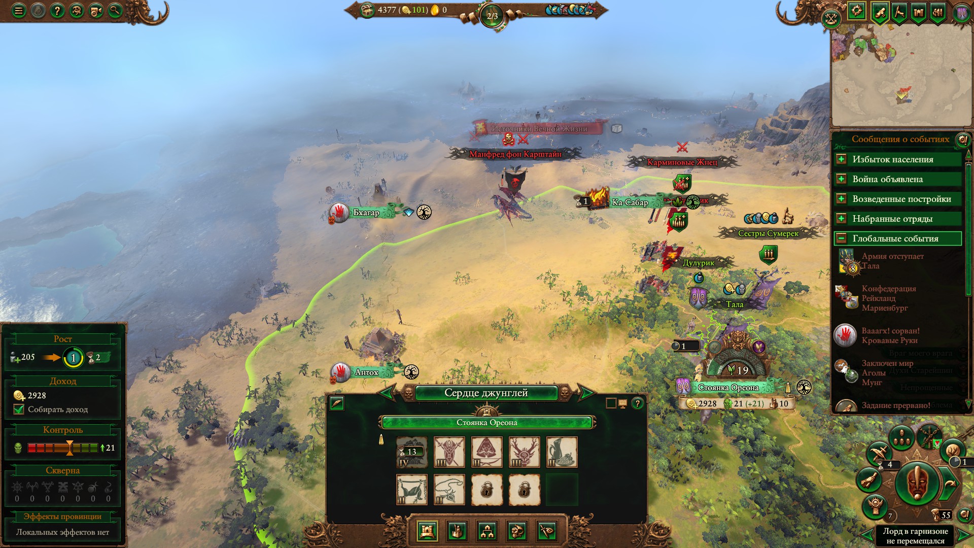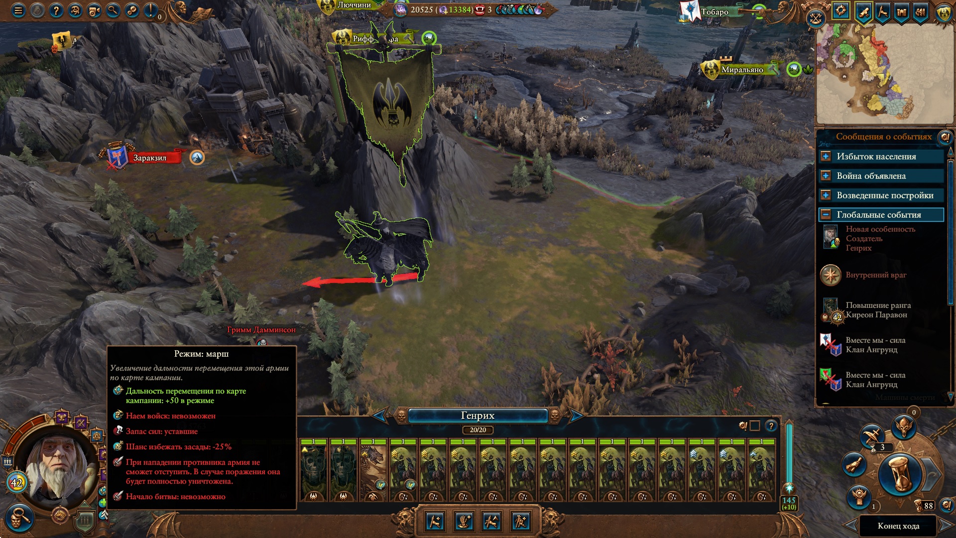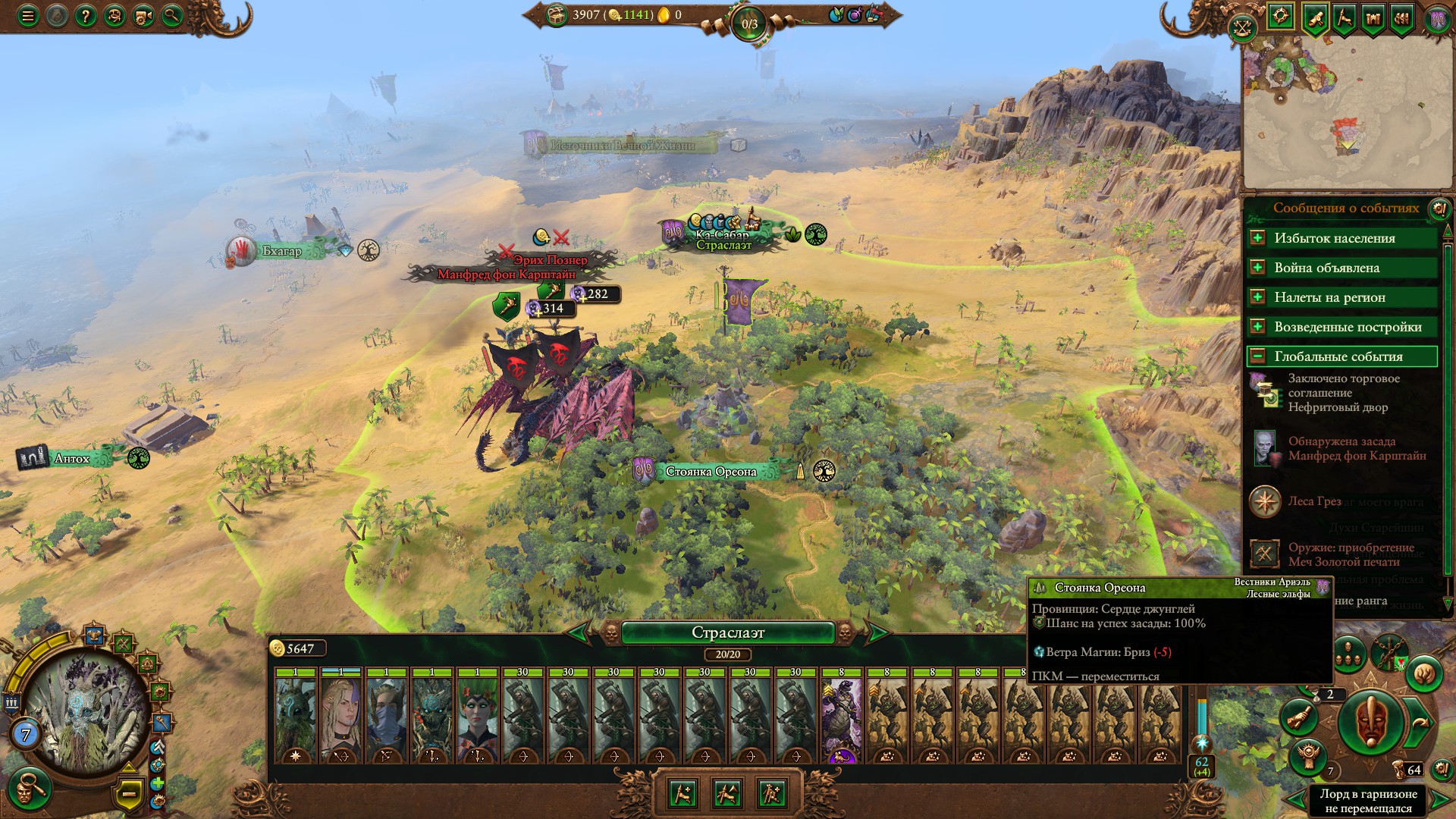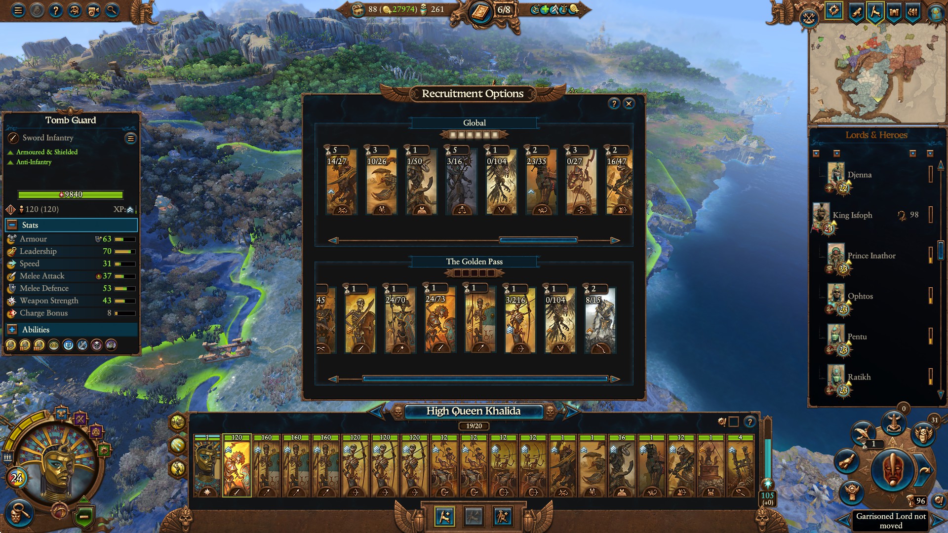 Армия состояла из Морати, Сюзерна, 8 пиратов черного ковчега шнепперов и 10 темных панцирей щитов, второй лорд маг огня. Под конец нанимал теней, но они очень дорогие, я не мог позволить себе экономически их.