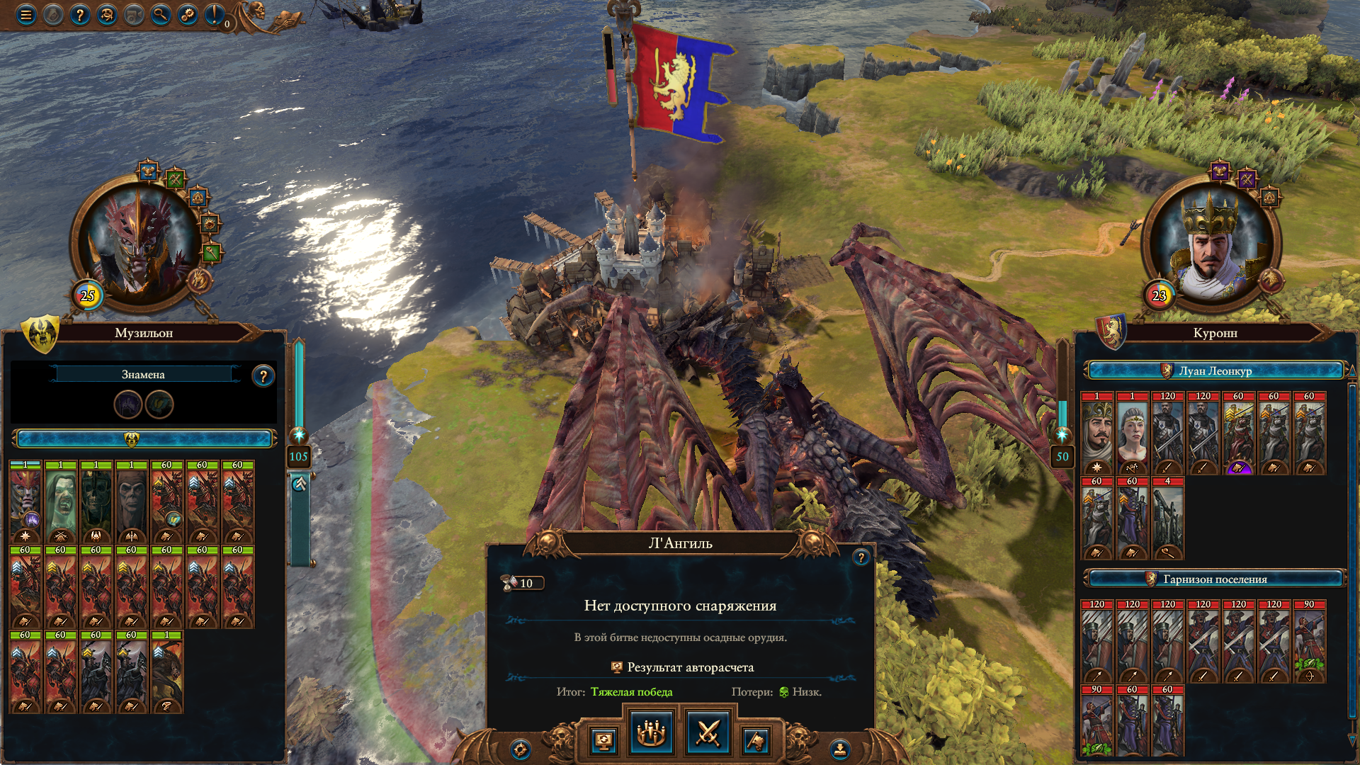 Спасибо за советы, но я скорее всего просру. Но с другой стороны, овчинка не стоит выделки- +5 физрезиста и 20% снижение цены поднятия мертвых слишком слабый бонус. В Музильоне и в землях империи Стриг есть уникальные постройки, дающие гораздо более жирные бонусы, которые и захватить намного легче