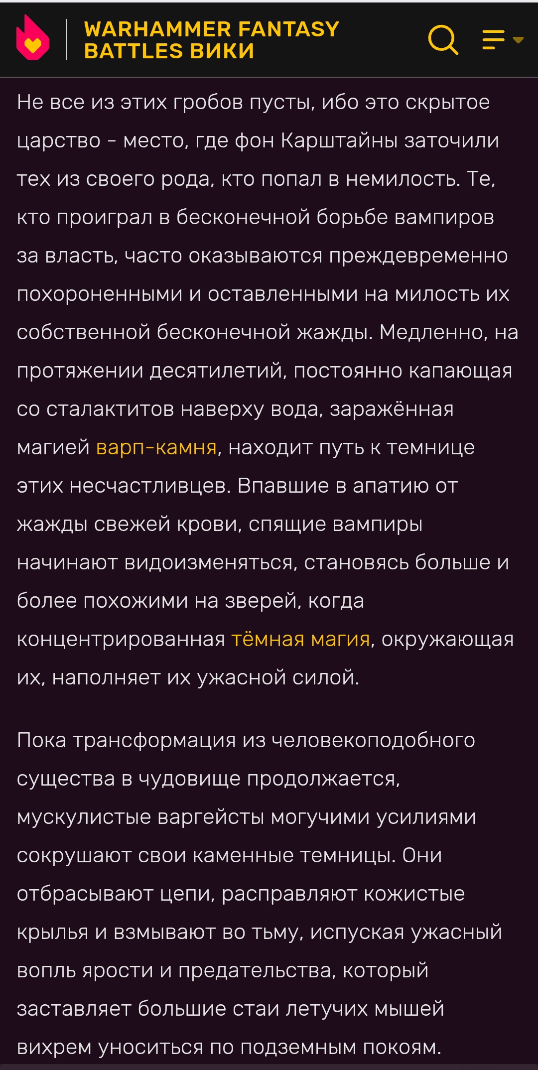 ФБ как-то совсем недоиспользует вампиров. Что в лоре, что в играх. Вампиры йоба, и маги и воены бессмертные, на каждого убитого скавена плюс крысоскелет у графств, можно всяких учёных похищать, делать их бессмертными слугами и пусть они свою нульнскую академию открывают в болотах. Наследники Нагаша, а Нагаш хаос попускает одним своим присутствием. А на деле пук-сряк посидели в Сильвании и умерли.