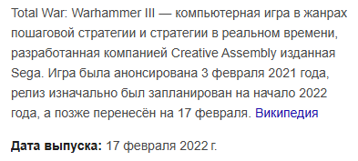 Warhammer 3 Анонсировано ДЛС со Слаанешем: https://www.youtube.com/watch?v=avVyfLV6YXI 1) Показали лордов Слаанеш (Дечала Отверженная) и Норски (Саул Вероломный). Последняя раса - высшие эльфы, лорд Аислинн. Название длс - Tides of Torments. Выход отложен, СА обещает выпустить наконец в конце октября. 2) Вышел патч 6.2, который серьезно апдейтнул предметы для персонажей. ВНИМАНИЕ! АХТУНГ! АЛЯРМ! Размер патча крайне большой (55 гигов), так что придётся потерпеть долгую закачку и установку. Зато после размер игры снизится примерно на четверть и загрузки в самой игре станут побыстрее. 3) Патч 6.3 с апдейтами для томбов и лизардов, а также с новыми необычными местечками, доступен в бета-версиях игры. 4) Есть сообщения, что в бете 6.3 крем.апи крашит игру, решения пока нет.