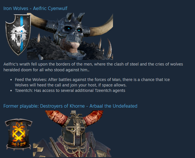 >>50215919 Потому что это фракции моногодов, а не демонов. Если лорд и фракция фул кхорниты то сюда. Сигвальд выбивается из этой схемы потому что в однухе разделение не планировалось.