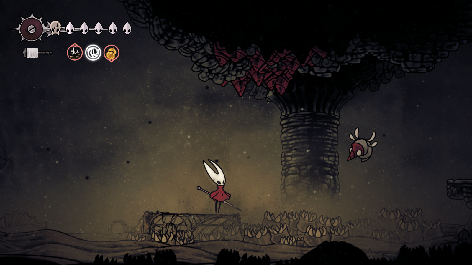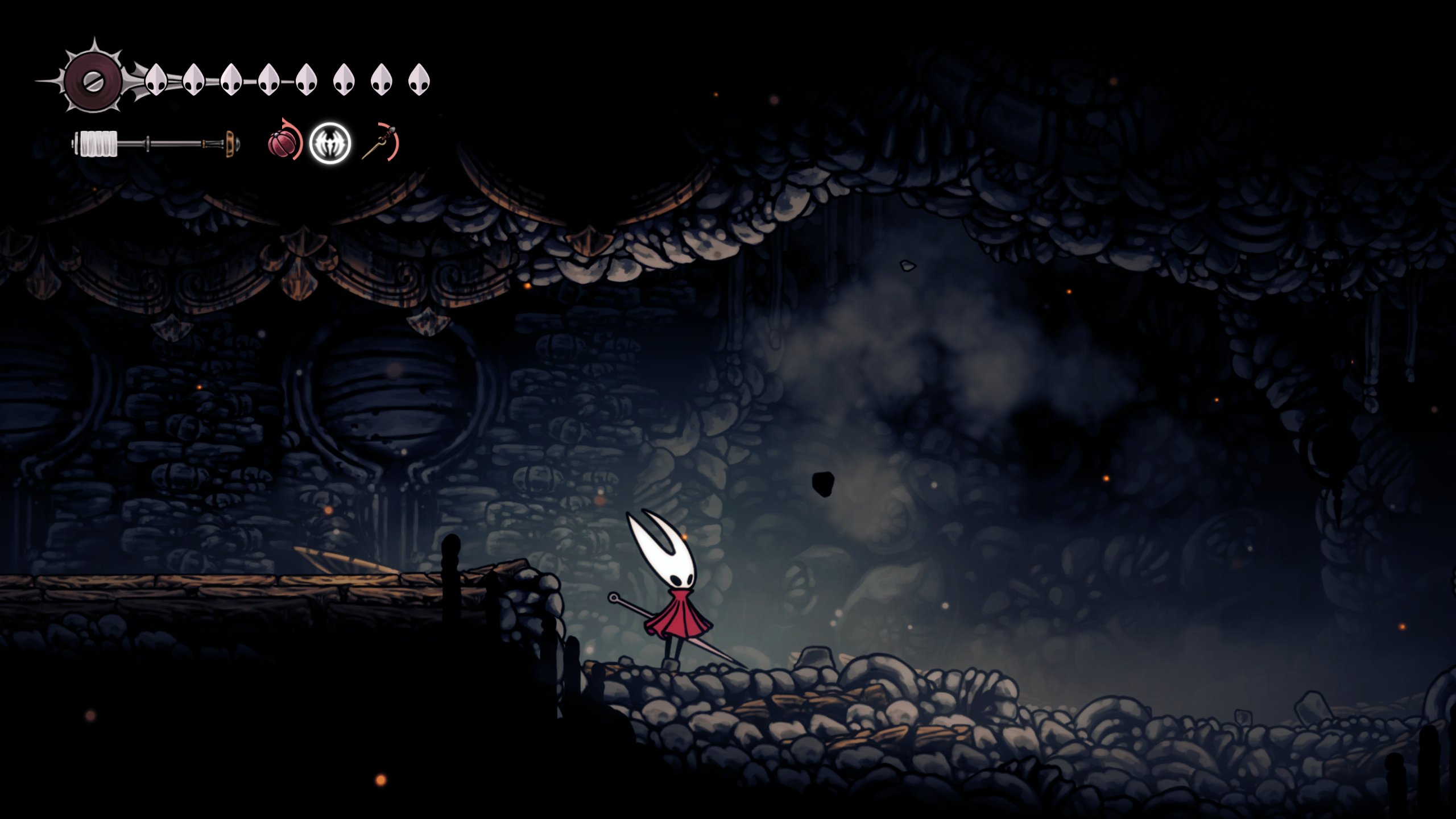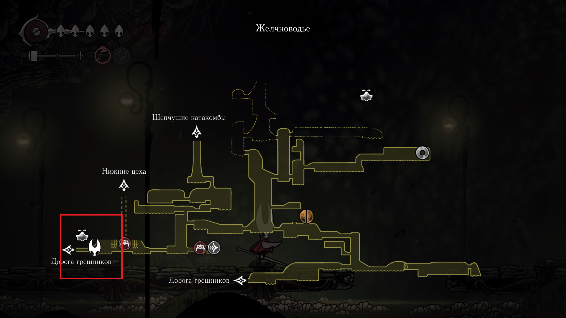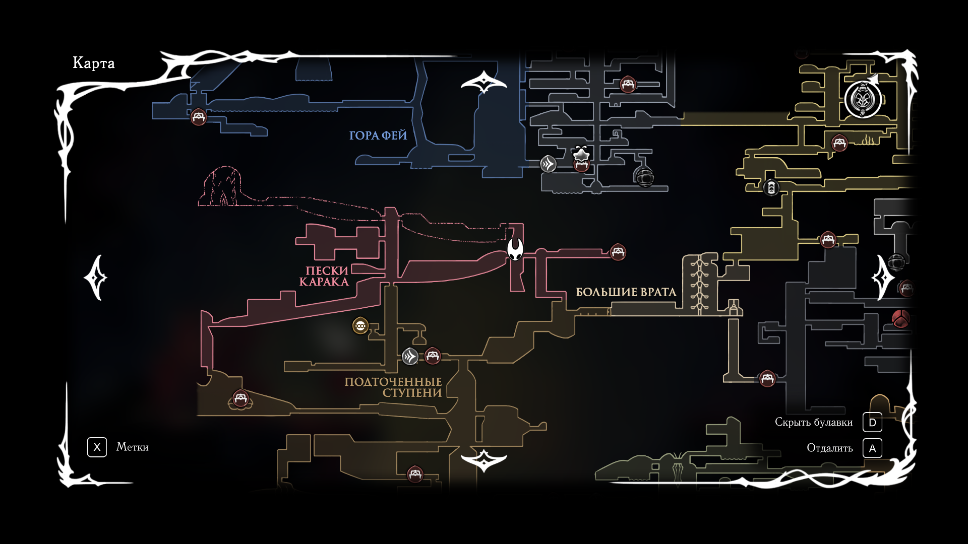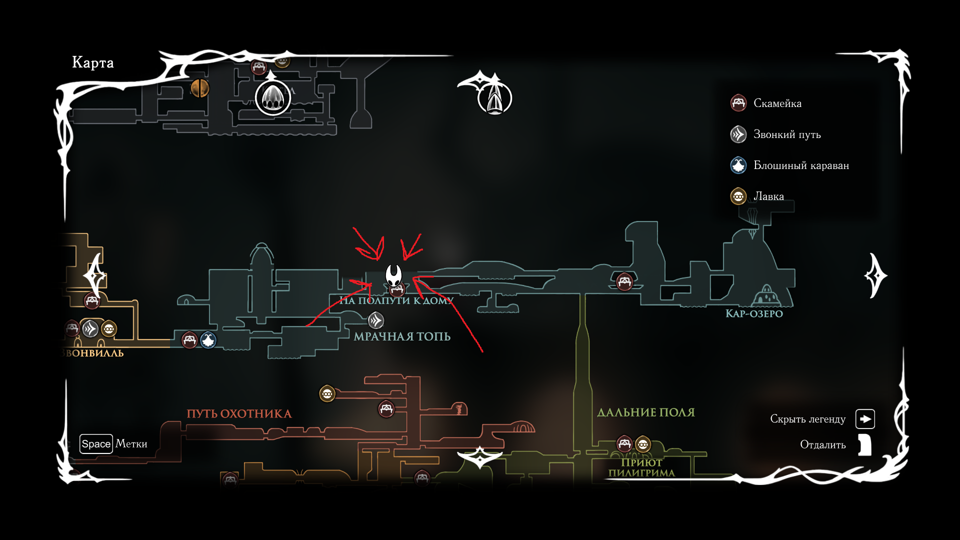 В первой части был полностью "логичный" фэнтезийный мир с логичной географией. У нас есть перевёрнутая вертикаль (что логично, жуки же подземники): наверху пролы ломают кристаллы, под ними спальный район, под ним - вокзал и кварталы для нитакусь (грибы), далее - местный ДС-сити, ниже - белый дворец и местные архивы спецслужб и бездна. С краёв карты - тупо края королевства, ветер, тишина, дикие твари, камни и всякие объебосы типа пчёл и отщепенцев-еретиков типа Джонни. При этом опасные локации более-менее в лоре: богомолы - дерзкие и гордые, но им это прощается, чтобы ограждать цивилизованный жучиный мир от его наиболее маргинальной части в виде глубинного гнезда (где даже до чумы Сияние было дохуя дикой живности), зелёная тропа внутри лора игры не была главным путём в королевство - по ней ходили паломники Унн, а так-то нормальные жуки приезжали на поездах сразу к столице. В Силксонг пока наиграл 40 часов, заканчиваю второй акт, но, чувствую, так и не узнаю ни лора комаров с воздушными шарами, ни огнепоклонников в бамбуковом лесу, ни какого хуя тут такие дикие перепады температур в одном месте, дождь во втором и сухо в третьем (в первой части дождь лил из озера наверху, а тут?)