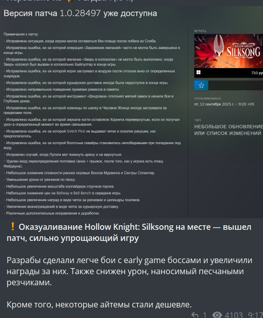 Не смотря на то, что мне клейр обскур очень сильно понравился, но стоит признать, силксонг это игра года, это прям вообще лучшая метройдвания за все время и одна из лучших игр в принципе. Так что соре, но игра года уходит точно ХОРНЕТ