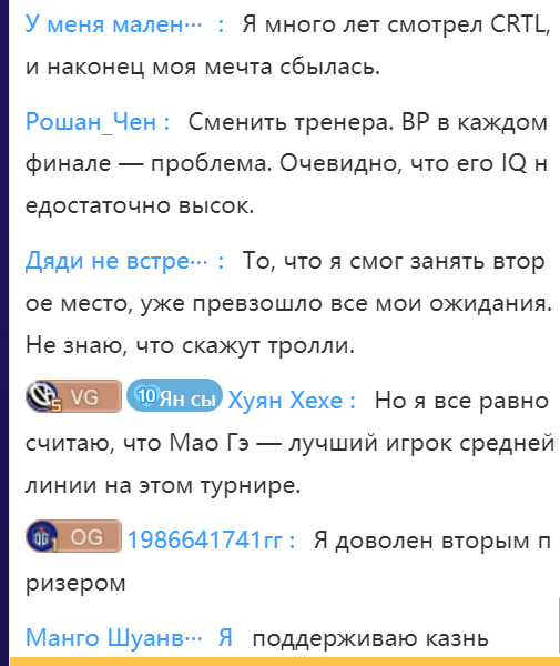 Китайцам просто не разрешат победить иначе ставочки будут проебаны. Интересно сколько раз китайцам давали надежду, сколько раз они доигрывали до 5 карты в финале инта и сколько раз в последний момент буки опрокидывали китайцев? Я так и знал что это будет второе место для XG, хотя, конечно, они заслуживают первое