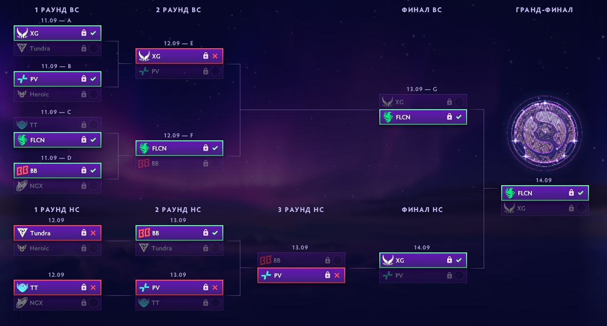Благодаря слаженной игре, индивидуальному мастерству каждого игрока и грамотной стратегии, XG смогли одолеть Falcons (петухов) и одержать победу на турнире. Этот успех стал заслуженным признанием их таланта и упорства.