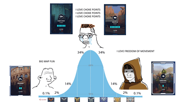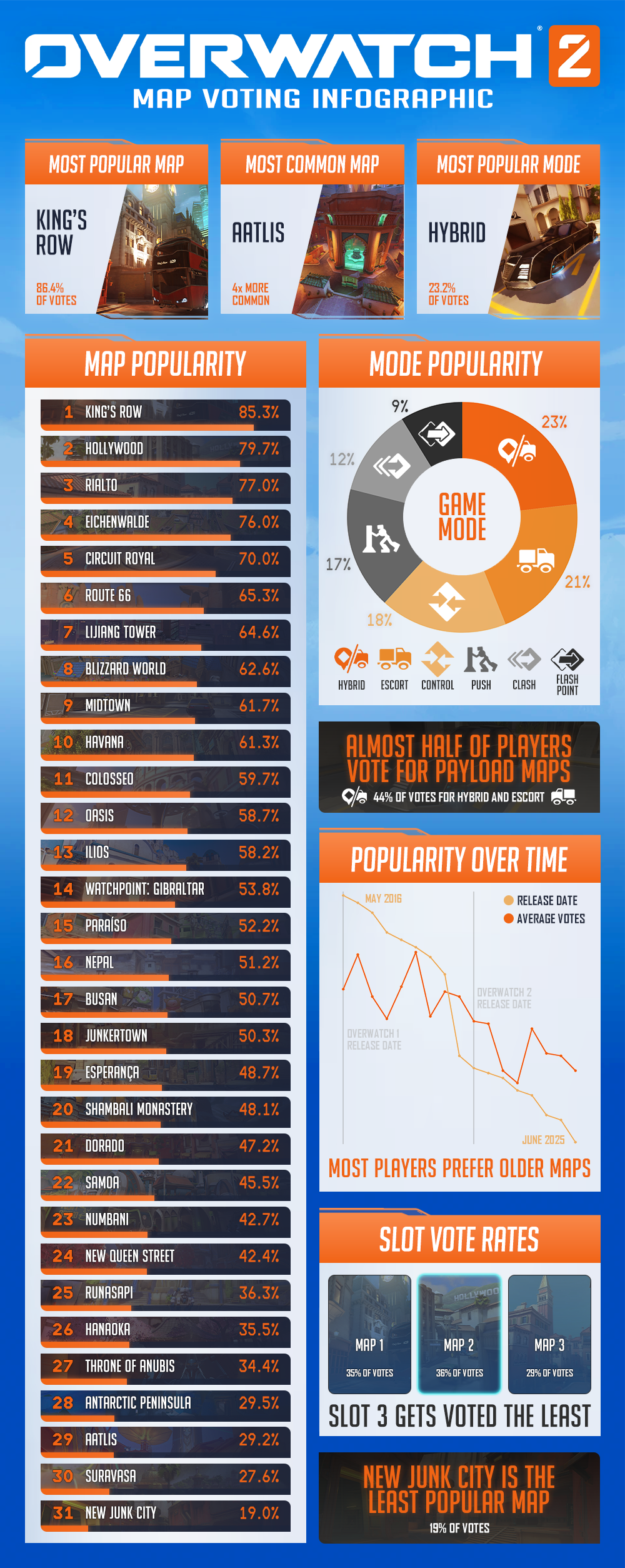 Дальше уже не так все однозначно. Но в целом за "старые" карты оверватча всегда голосов больше. Люди недооценивают, но мапмейкеры первого оверватча - в своё время очень сильно постарались и выдали тру шедевры. Осечек кроме Парижа разве что, ну может быть и Луны (Горизонт вроде не помню) по моему и не вспомнить прям таких. Да и то это больше проблема режима была чем карт.