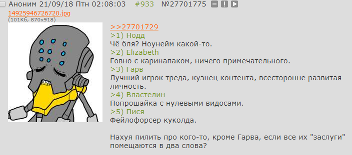 >эЭ...ЭТО ГАРВ?!?!?!? >Н..НЕЕЕТ...НЕЛЬЗЯ ДАВАТЬ ЕГО ВНИМАНИЕ НО Я ЕГО ТАК ХЕЙЧУ ЧТО НЕ МОГУ НЕ НАПИСАТЬ О ГАРВЕ!! .. >ПРИДУМАЛ! Я НАПИШУ ПРО ГАРВА НО НЕ ОТВЕЧУ ЕМУ ДИРЕКТЛИ ТАКИМ ОБРАЗОМ Я НЕ ДАМ ЕМУ ВНИМАНИЕ!!!