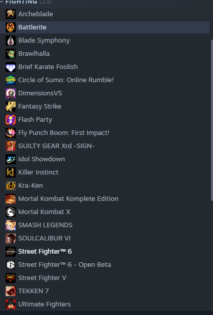 Discord-tier Virtua Fighter 5 R.E.V.O. The King of Fighters XV/XIII/XIV Granblue Fantasy Versus: Rising Tekken 7 UNDER NIGHT IN-BIRTH II Sys:Celes Street Fighter 5 DRAGON BALL FighterZ Melty Blood: Type Lumina Guilty Gear Xrd REV 2/AC+R BlazBlue Centralfiction Skullgirls Samurai Shodown Ultra Street Fighter IV SOULCALIBUR VI Dead or Alive 6 MORTAL KOMBAT 1