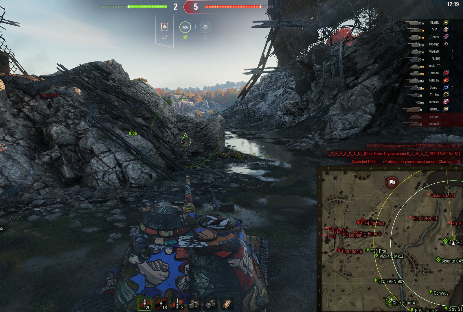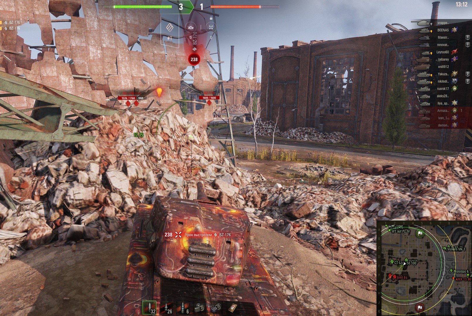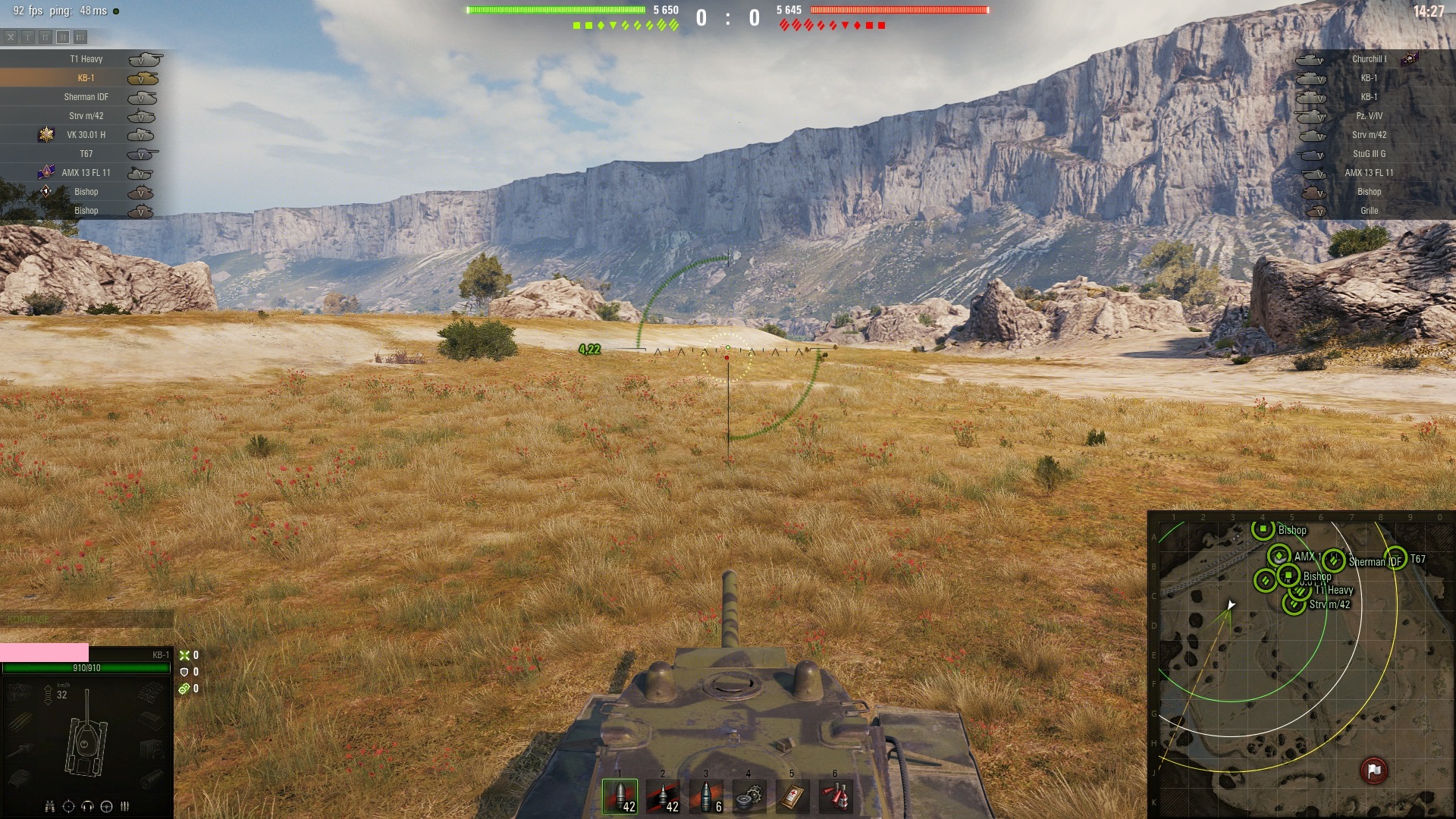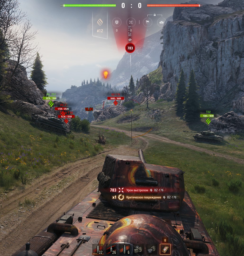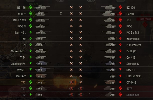 Обратите внимание что Сентурион не пробивает в лоб БЗТ-70 о чём говорит красный знак бронепробития. Неинтересно играть когда ты не можешь нанести урона противнику.