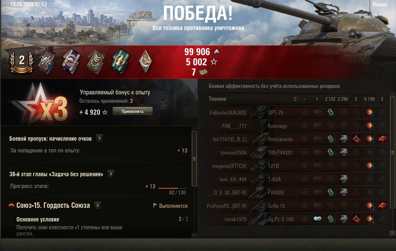 Заново начал играть, с нуля. Учитывая жирный промокод и все его задачи + танковую академию + клановые плюхи + резервы = хочу посмотреть, насколько получится качнуться к концу задач промика и ТА. Решил идти по веткам ИС-7 и Е5, сегодня еще заберу шестерку (пока не знаю, ст какой-нибудь надо бы) и ее тоже буду качать. Суть в том, чтобы на открытие танков свободку не тратить (поэтому суперконя не брал, сгорю нахер играть ветку), а модули ставить по возможности только необходимые за свободку, ибо насыпают каждый бой просто дохуя опыта. Но в песке пиздец. Пикрил вчера вечером, 1 сервер. Команды собирались около минуты, кое-как 18 рыл набралось, при этом сука по 2 арты, эти пидарасы видимо вообще по 5 минут в очереди стоят на мелких уровнях. Потом еще ТА неприятно удивила, раньше там были изичные задачи для топографии, которые быстро делались, сейчас топографию выпилили, а задачи сделали для полигона, и вот там пиздец, 5 раз надо было победить - сыграл 10 боев. Ну и хуй бы с ним, ну 10, но горение было от того чтобы все карты огромные, а лехи на 5-6 уровне тупо ебашат по центру (чтобы что?) и дохнут как мухи, в итоге почти все бои потные какие-то и долгие, я еще дурак по привычке пытался в соло на результат играть в заведомо слитых катках, надо было просто топиться. При этом в полигоне просто НИХУЯ не дают, как бы ты не сыграл, опыта минимум. Пустая трата времени бля.