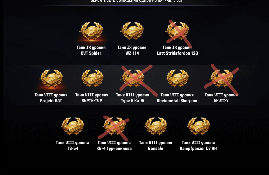 >>50214068 Им давно надо замутить какую-то хрень с коробками, короче, чтобы можно было шанс выпадения одних танков исключить, и шанс нужных - повысить. Один хуй, в основном все роллят ради 1-2 тутлов. Я помню 1 раз заебался в НГ, очень хотел Бизона. Естественно мне выпали все танки, кроме него. Тогда был первый и последний раз, когда я ебанулся и вдонил в нг-коробки бабла, 150+ коробок пришлось купить.